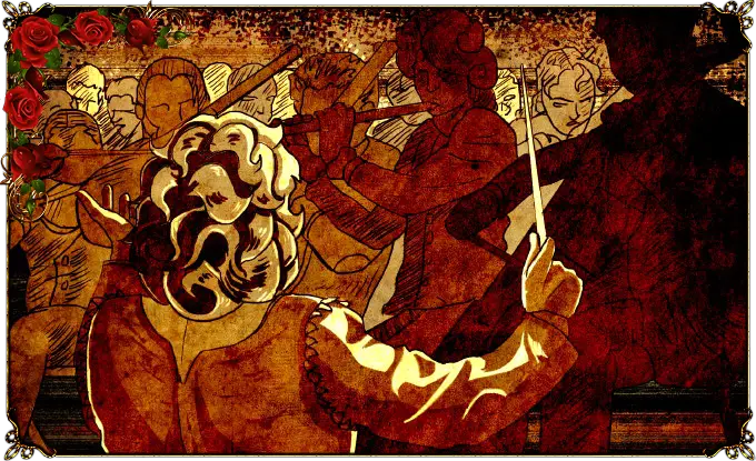 Blood Opera Crescendo combines the classic investigative mechanics of series like Ace Attorney with a strong atmosphere where the elegance of classical music and gory horror elements blend together into a unique setting: the Austria of the 18th century and the baroque style of the period which set the dramatic backdrop of a sordid tale of sin and murder.