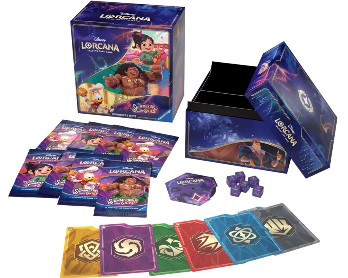 Ravensburger, the award-winning publisher of games, puzzles, and toys, announced the newest set coming to the wildly popular Disney Lorcana Trading Card Game lineup. During today’s Lorecast event, Ravensburger revealed details about Shimmering Skies, the fifth set of Disney Lorcana TCG, that not only welcomes new Disney characters and evolved game mechanics to the Disney Lorcana TCG universe but also gives players a glimpse of what’s next for the realm now that the power-hungry Ursula glimmer has been defeated. Shimmering Skies will be released first at local game stores, Disney Stores and Disney Parks on August 9, 2024, followed by mass market retailers and DisneyStore.com on August 23, 2024. Ravensburger also announced an exclusive Shimmering Skies foil card featuring alternative artwork that will be available for a limited time in new, stickered copies of Disney Villainous: Introduction to Evil board game starting August 1, 2024. It will be available at hobby stores nationwide in the US and Canada and select retailers, including Target.com (US), Barnes & Nobles (US), Amazon (US & Canada), Indigo Bookstores (Canada), and Mastermind Toys (Canada).