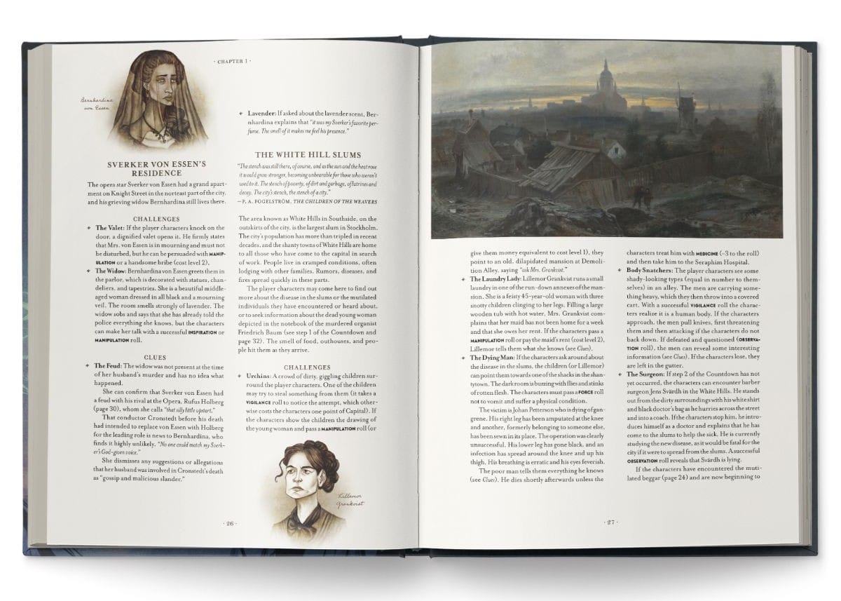 Written by Kiku Pukk Härenstam, City of My Nightmares brings Gothic 19th-century Stockholm to life through richly illustrated locations and atmospheric storytelling. While rooted in Stockholm, the campaign can easily be adapted to other Gothic interpretations of cities such as London or Prague.