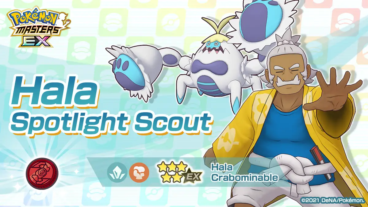 Hala & Crabominable: Ice-type sync pair. Can use moves, like Dire Hit+ and Make ‘Em Holla!, that boost stats.