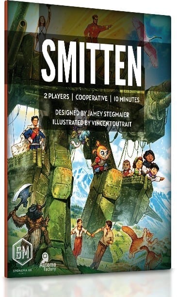 Smitten 2 is a cooperative micro-game for 1-2 players. The 9 new cards in this standalone sequel are designed by Ryan S. Davis. In Smitten 2, players work cooperatively with limited information/communication to complete two identical 3×3 grids of cards, each inspired by Stonemaier games released since the original Smitten and illustrated by The Mico. There are multiple difficulty levels and separate modes for solo and 2-player games.