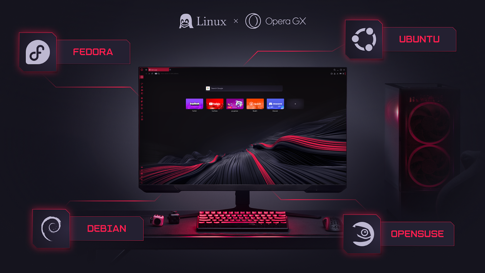 Opera GX has accounted for various versions of Linux, supporting Ubuntu, Debian, Fedora, and OpenSUSE, with Flatpak in development. It also can be installed using .deb and .rpm packages.