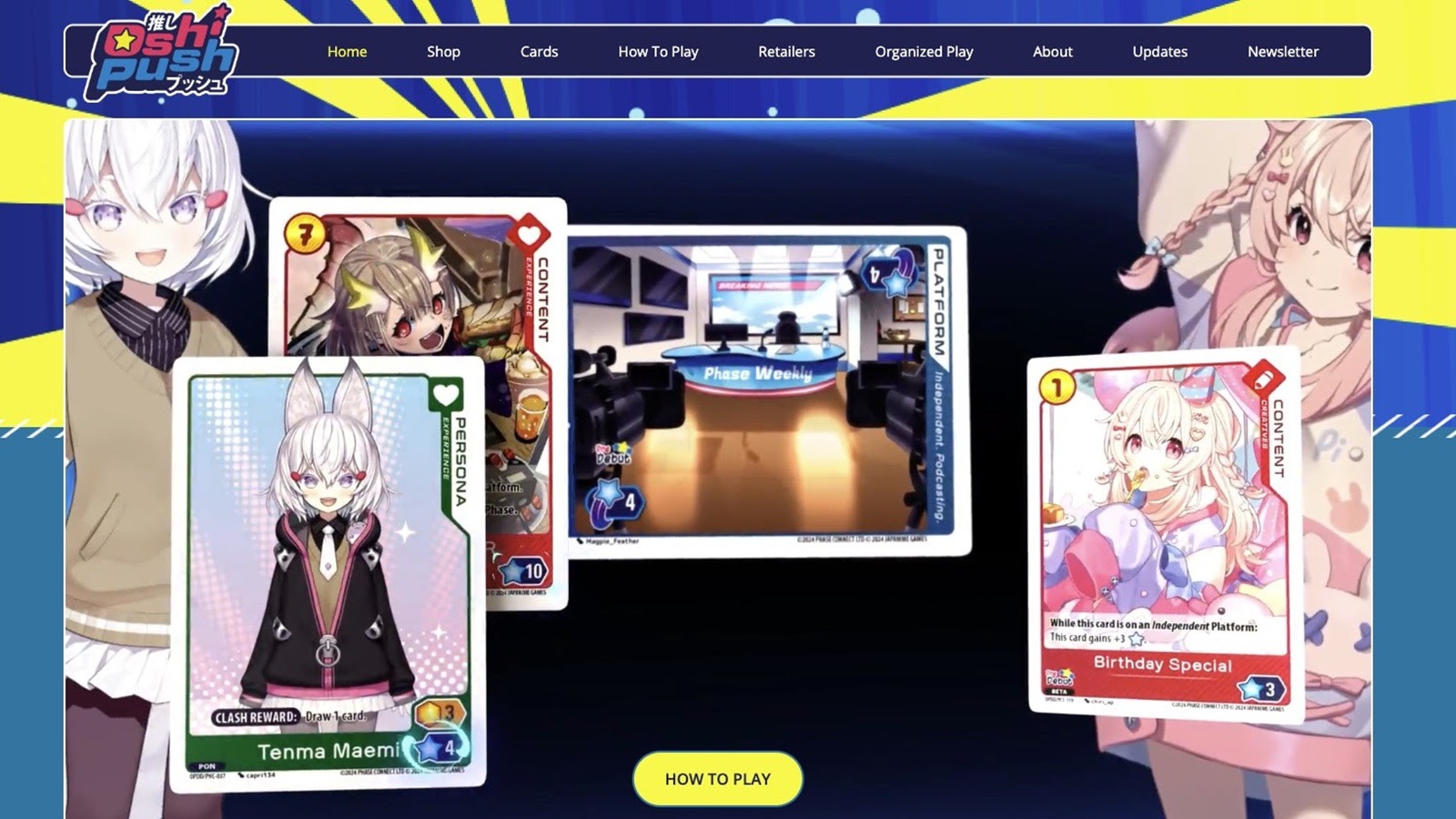 Our new Oshi Push website is live! Learn how to play the game, browse the card database, and learn about organized play events straight from the site! You can download the print and play decks or check out the Tabletop Simulator mod to get a head start on mastering the game.