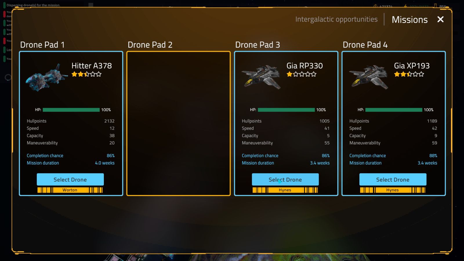 Taking a jog to the left from profitability, I now have to set up a research arm to begin to generate research points. After employing some scientists, I’m able to start researching base improvements and fresh tech. Upgrades to my weapons, utility pods, and my commercial interests come from these trees, though I found more interesting blueprints with the traders on my various landing pads. I was ready to get back to my profitability when the pirates showed up.