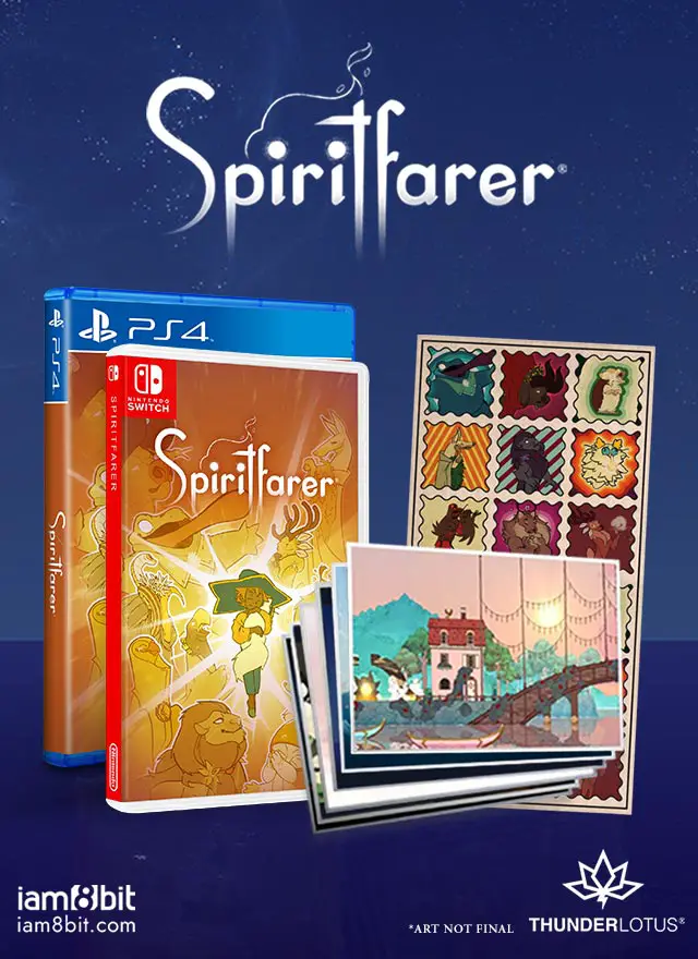 “We are honored to be working with Thunder Lotus Games to bring Spiritfarer to physical, giving even more gamers an opportunity to enjoy and cherish it,” said Jon Gibson and Amanda White, co-owners of iam8bit. “Spiritfarer is a beautiful game both visually and narratively, which has made collaborating with Thunder Lotus to create memorable physical and collector’s edition bonus content a real treat. We can’t wait to share what we’ve got in store with Spiritfarer fans.”