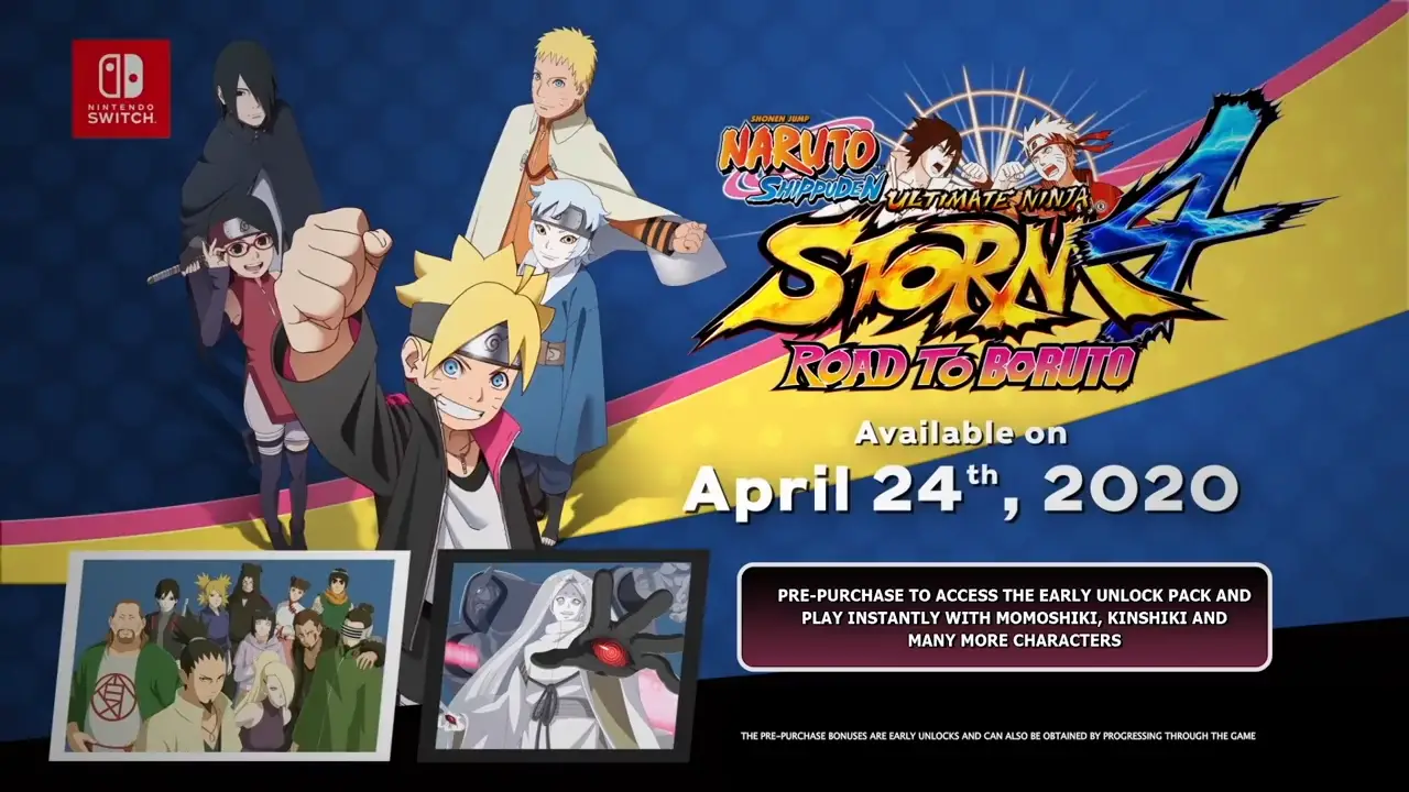Players who pre-purchase NARUTO SHIPPUDEN: Ultimate Ninja STORM 4 – ROAD TO BORUTO for the Nintendo Switch system will receive the Early Unlock Pack. The Early Unlock Pack instantly unlocks many playable characters including two brand new characters – Momoshiki and Kinshiki. NARUTO SHIPPUDEN: Ultimate Ninja STORM 4 – ROAD TO BORUTO will be available for the Nintendo Switch system on April 24, 2020.