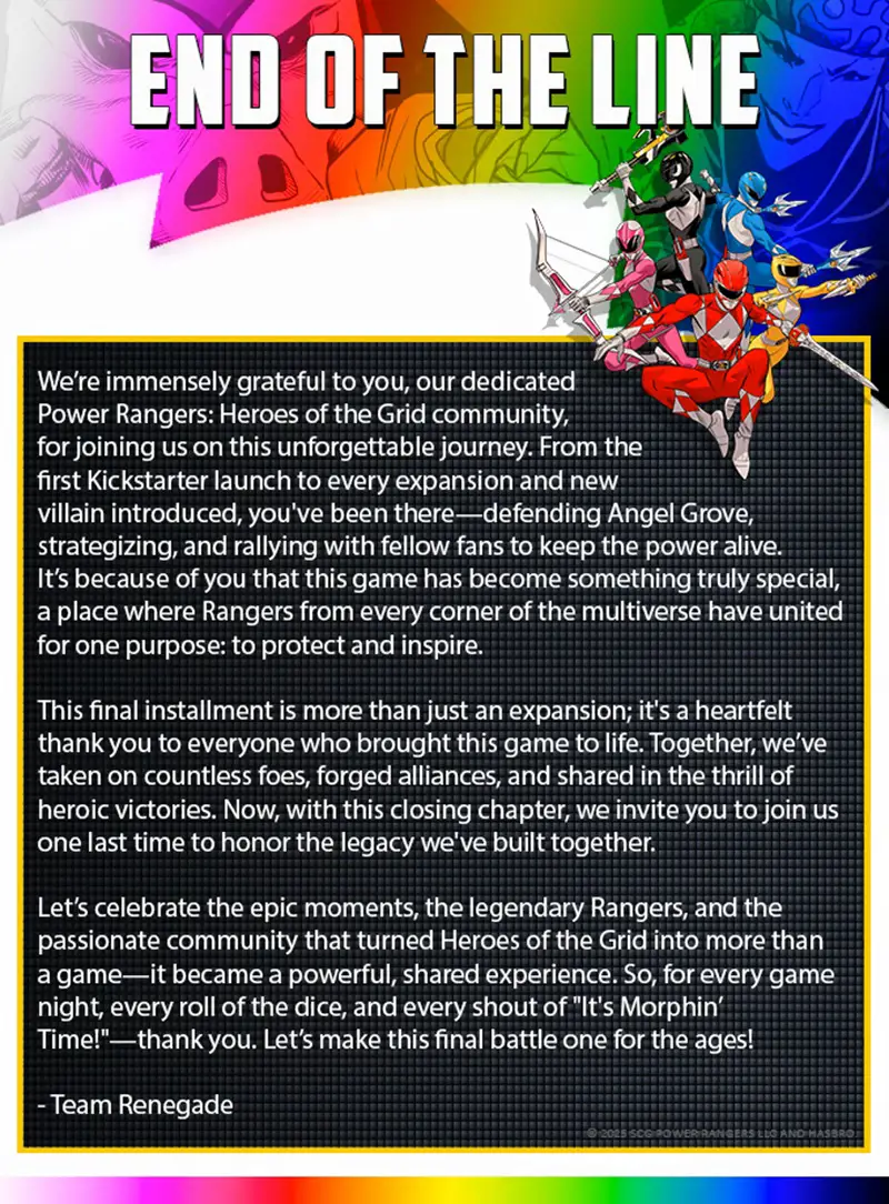 The final installment of Power Rangers Heroes of the Grid is now live on Kickstarter. The Eternal Rangers expansion is exclusive to Kickstarter so don’t miss out on this mighty opportunity.