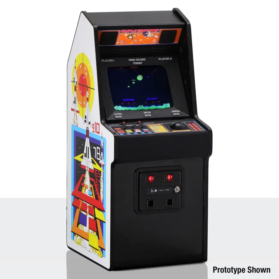 Missile Command X RepliCade Standard Edition is a faithful recreation of the 1980 arcade original, featuring a Trak-Ball interface, illuminated Volcano-style buttons, and striking cabinet art. A unique CRT FX lens transforms the built-in LCD to look like a CRT display from the era — scanlines and all.
