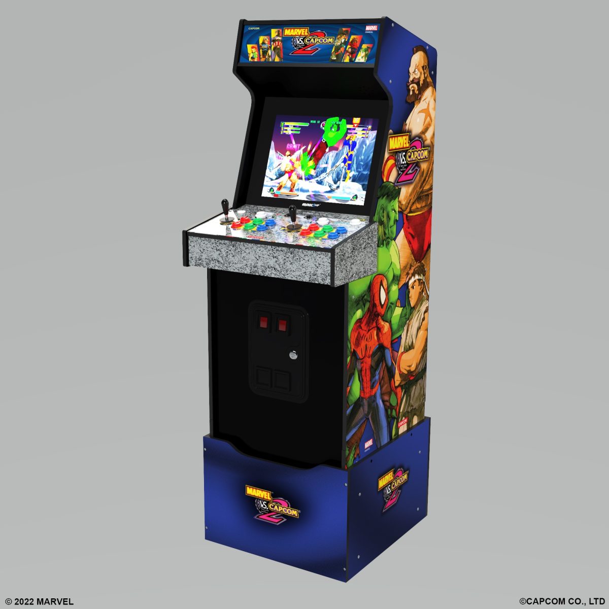 Arcade1Up’s highly anticipated Marvel vs. Capcom 2 arcade is now available for pre-order through Arcade1Up’s website and through Best Buy and Target. This Marvel vs Capcom 2 arcade features 56 characters from the Marvel and Capcom rosters, Wi-Fi, and eight classic titles: Marvel vs Capcom 2™, Marvel vs Capcom™, Marvel Super Heroes vs Street Fighter™, X-Men vs Street Fighter™, Marvel Super Heroes™, X-Men: Children of the ATOM™, X-Men: Mutant Apocalypse™ and Marvel Super Heroes in War of the Gems™