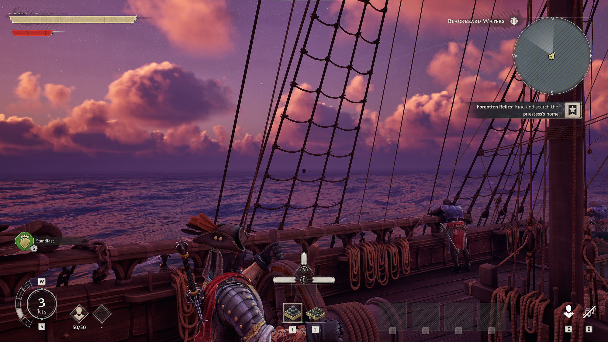 Conquer the Seas: Answer the call of the seas and move seamlessly between ship and shore. Naval combat is shaped by your decisions, whether you’re trading cannon fire at range or closing in for fierce boarding actions. Equip and customize your ship to suit your playstyle, from nimble ketch to versatile brig and monstrous frigate. And when the cannons go silent, claim your spoils and share a sea shanty with your crew as you sail onward.