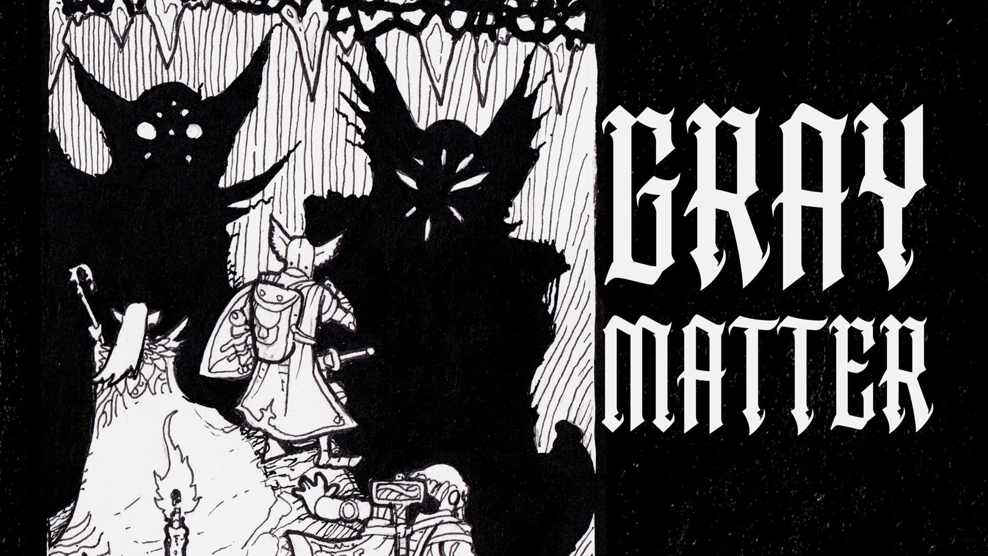 Gray Matter is a surrealist D&D 5e dungeon crawl by Nathan Heard. Cover art by John Bilodeau.