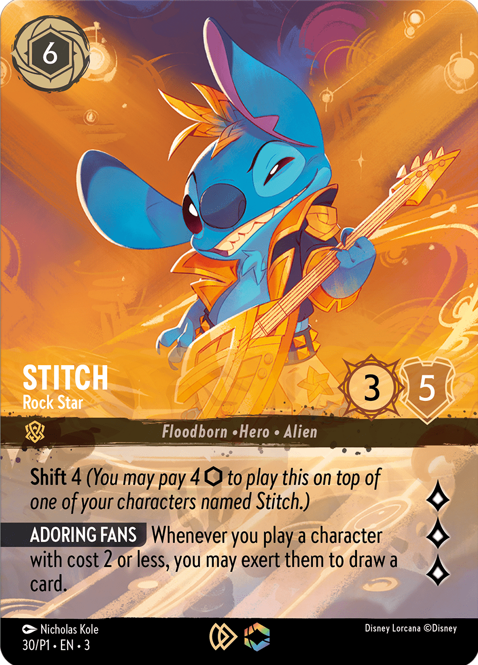 At the local level, Ravensburger will also debut a new type of in-store Organized Play event – Set Championships – starting in April 2024, after the release of the Into the Inklands set. Select Disney Lorcana TCG Organized Play–approved locations may host an Into the Inklands Championship, which includes a unique Enchanted Stitch – Rock Star Promo card that is only available as a prize at the Into the Inklands Championships. The top two players at the event can also win a playmat featuring the new Stitch – Rock Star artwork. Details for how retailers can host an Into the Inklands Championship will come in late February 2024.