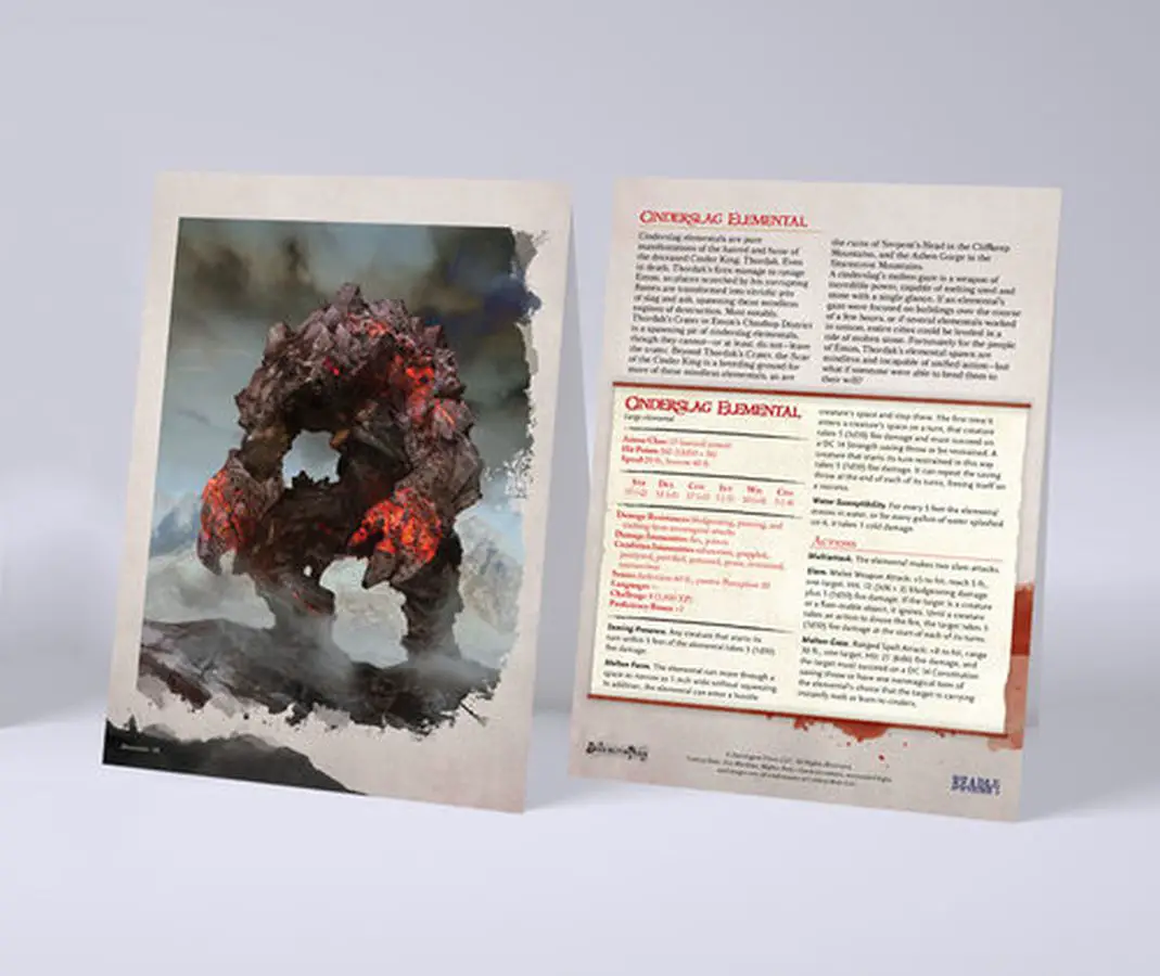 A card for every new magic item, and three for every Vestige of Divergence, legendary artifacts that grow in power with their wielders, so that the GM can give their player a card for each tier as they go: dormant, awakened, and exalted.