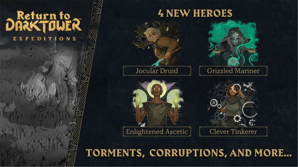 The Dark Tower stirs again…we’re thrilled to announce Return to Dark Tower: Expeditions, a new expansion coming to Kickstarter this fall! Sign up here to be notified of the campaign launch. Return to Dark Tower: Expeditions will feature four different expeditions, four new heroes, new gear, new treasures, and more, giving more challenges and levers to toggle for variability and difficulty in your Return to Dark Tower experience.