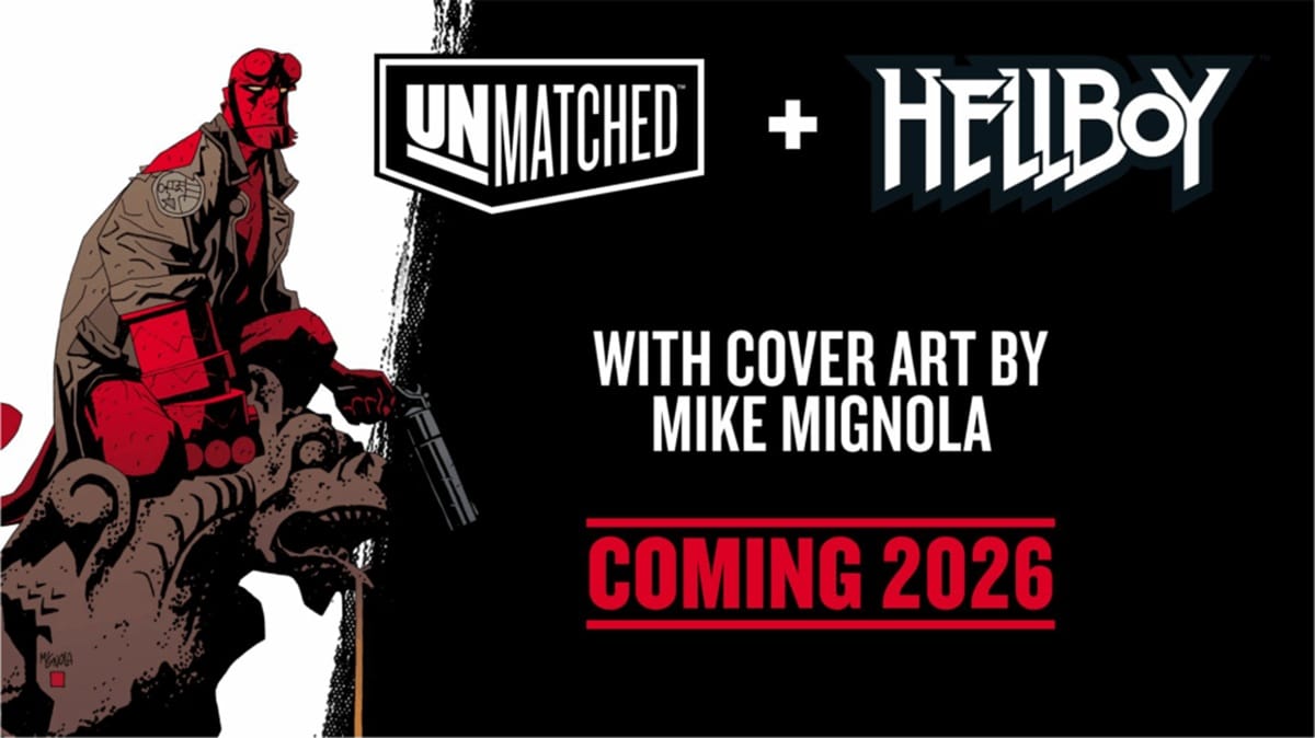 And our big brand new announcement, we’re so excited to announce our next licensed Unmatched set: Hellboy. This four character box set will release in 2026 and feature cover art by Mike Mignola himself! Make sure to sign up to be notified for release here!