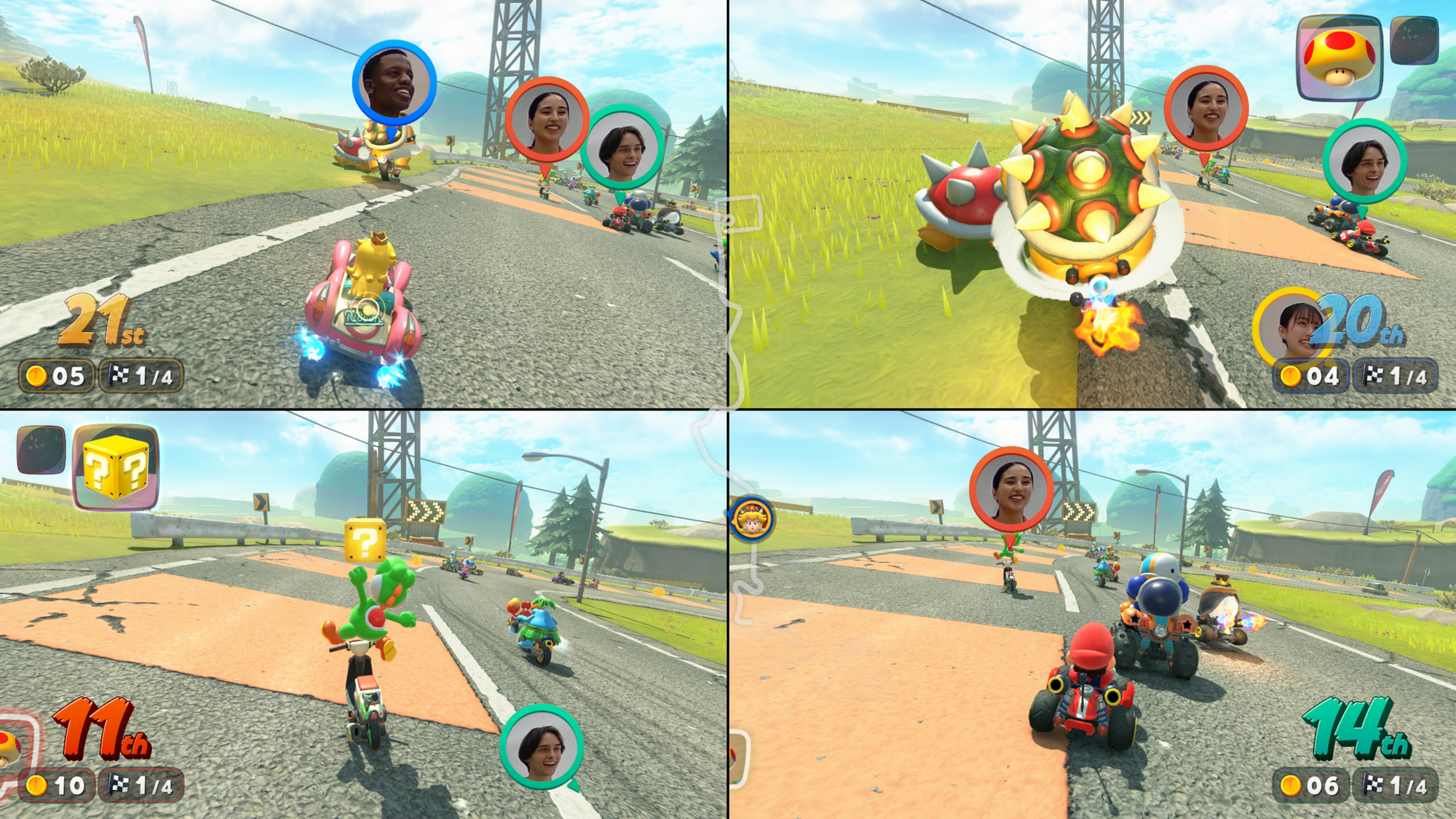 24 Racers: Mario Kart World features races with up to 24 participants from around the world – the most in Mario Kart series history! Modes like Grand Prix and Knockout Tour allow up to 24 players to compete, filling the game world with friends and familiar faces and plenty of rivals to vie for first place.