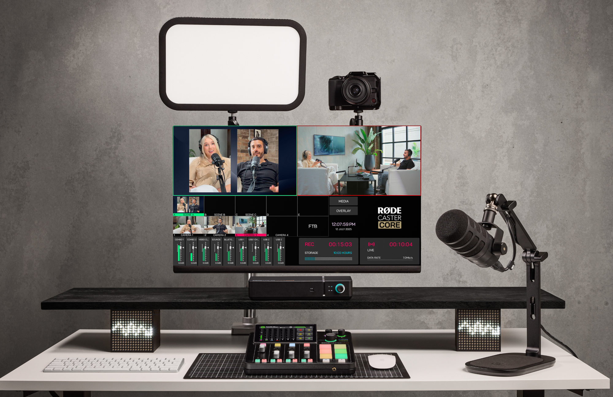Launching alongside it, RØDECaster Sync is an innovative new feature that seamlessly connects the RØDECaster Video Core with the RØDECaster Pro II and RØDECaster Duo audio interfaces, creating a single unified production hub. With RØDECaster Sync, audio-first creators can expand into video with zero fuss, scaling their setup effortlessly while maintaining the studio-grade sound and intuitive control that has made RØDECaster the creative industry standard.