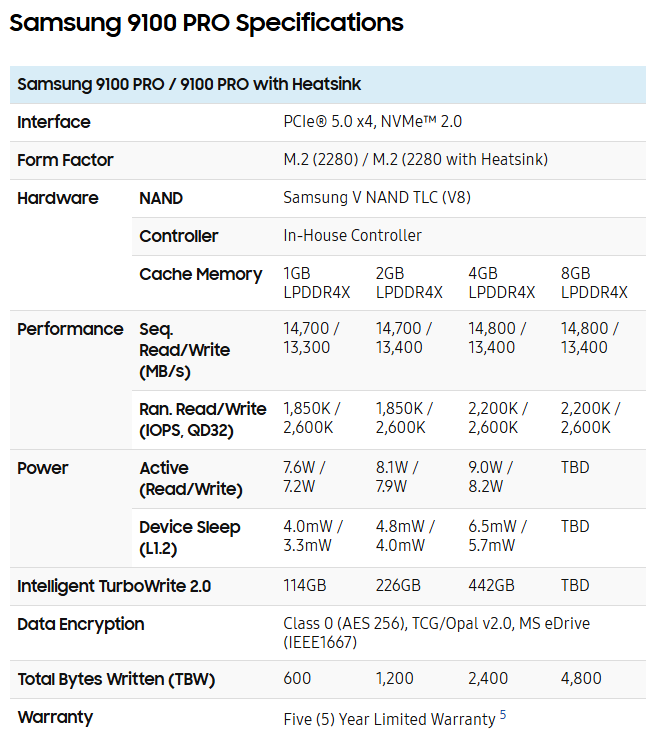 The 9100 PRO SSD will be available starting this March in the 1TB (MSRP: $199.99), 2TB (MSRP: $299.99) and 4TB (MSRP: $549.99) capacities. Similarly, the 9100 PRO with Heatsink will be available in capacities including 1TB (MSRP: $219.99), 2TB (MSRP: $319.99) and 4TB (MSRP: $569.99). The 8TB models will be available in the second half of 2025.
