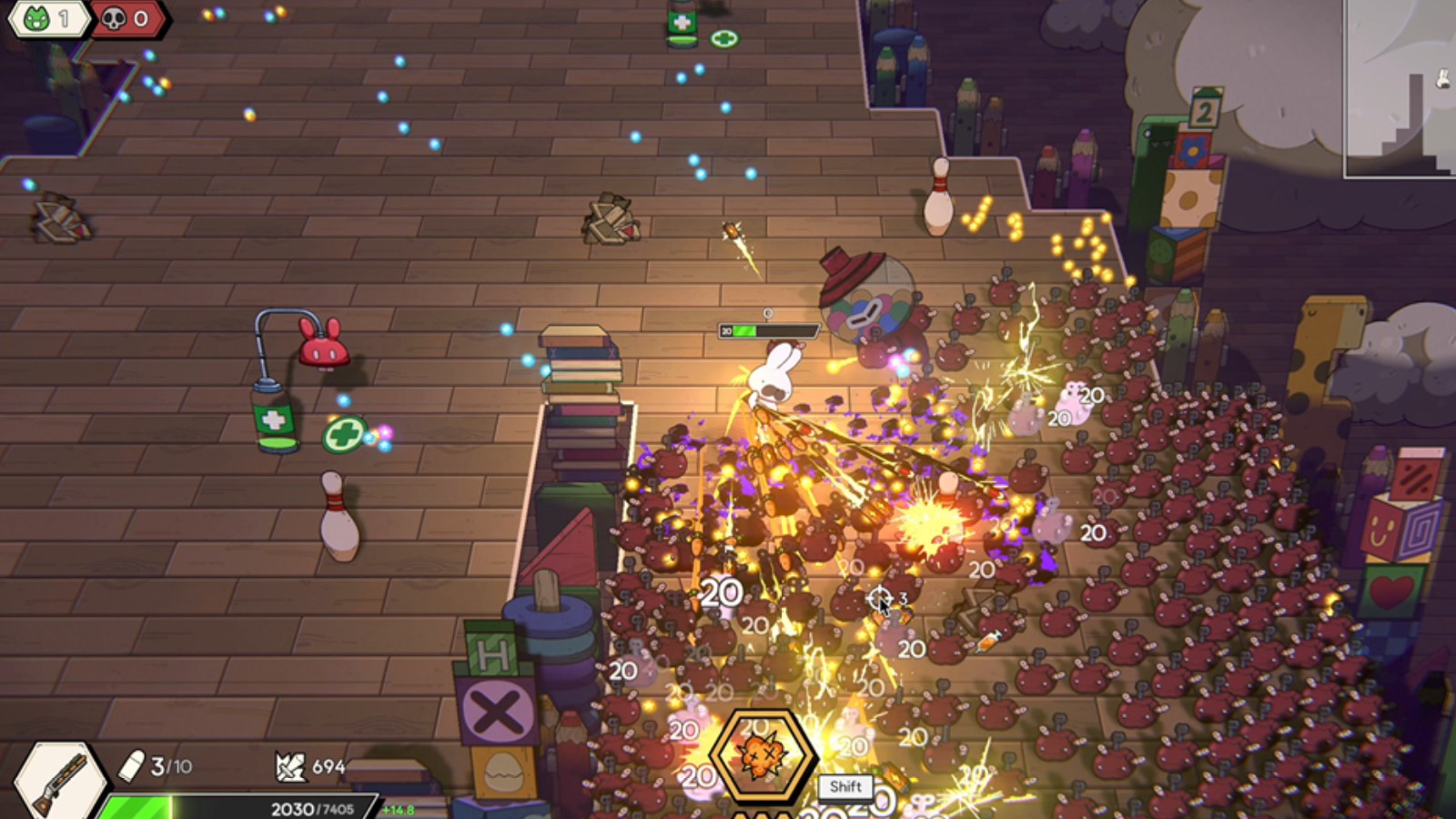 Additionally, it is a 2.5D quarter-view game with cute graphics, combining survivor and roguelike gameplay elements in a casual shooting team battle game. SandyFloor emphasized that it is the most suitable game for gamers who enjoy games like Vampire Survivors and have been waiting for a game to team up with friends and compete against various teams.