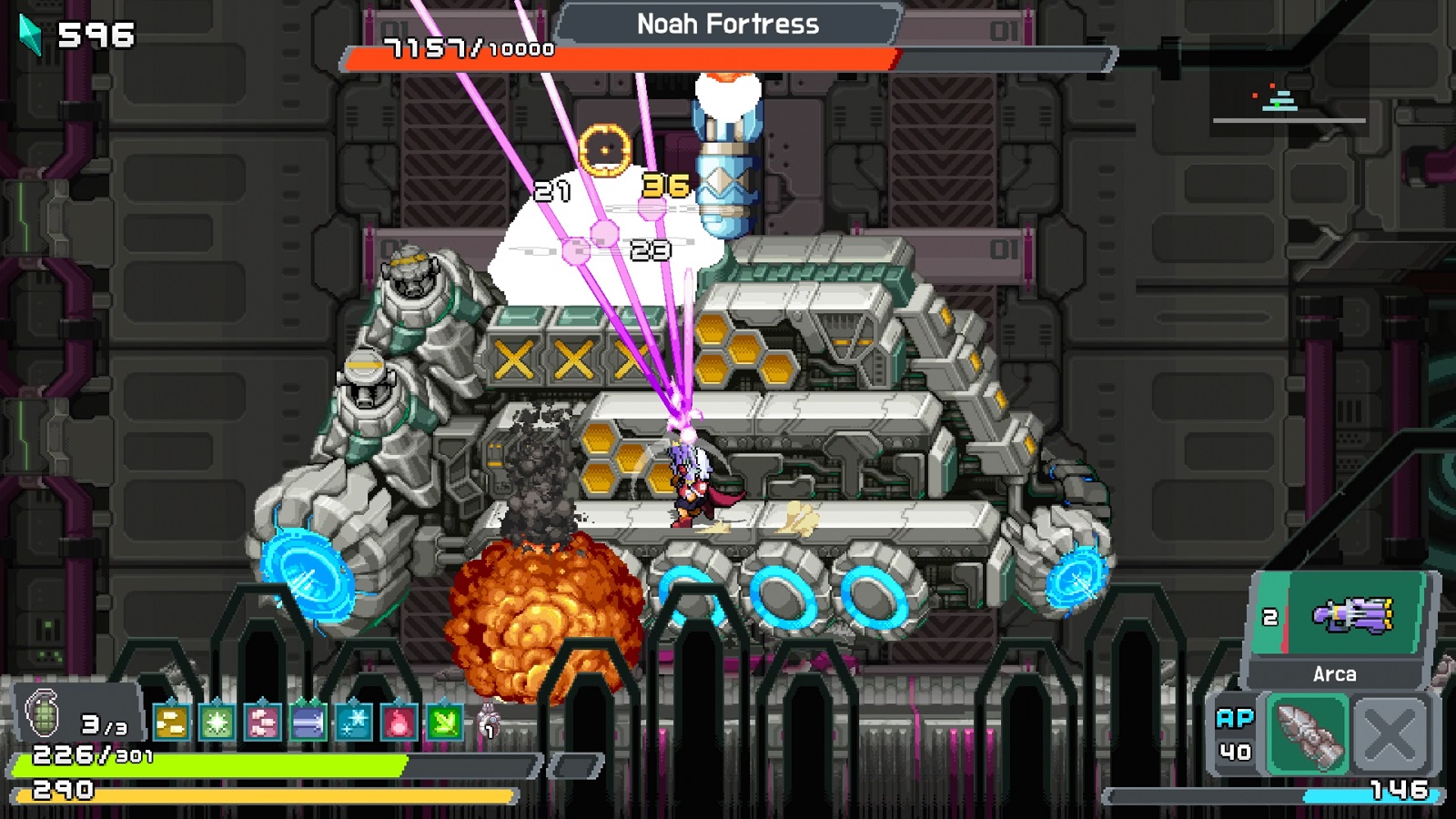 Critadel is a futuristic platformer/shooter/roguelike in which players run, jump and blast through the convoluted pathways and secret chambers of a giant mechanical tower. A 360° aiming cursor allows ranged attacks in any direction. Enemies include deadly bosses and minions of the “Order of Noah,” an evil faction that has seized control of the tower and seeks to recover ancient knowledge that can grant eternal life.