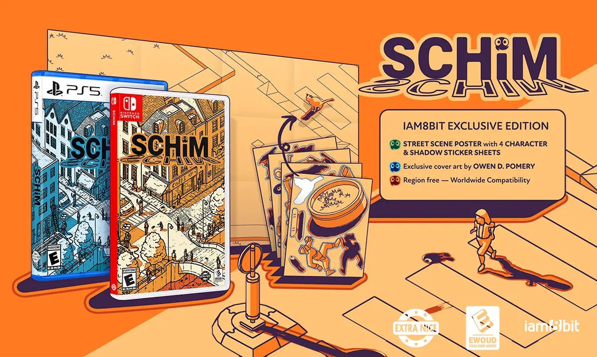 The upcoming shadow hopping indie game SCHiM will receive both a retail physical release along with an iam8bit exclusive edition, with both editions up for pre-order now. The standard retail edition will be available at most major retailers and features the main game along with four bonus art cards and will release on October 25th, while the exclusive edition will feature an 11″x17″ poster, four character and shadow sticker sheets, and more and will ship in Q4 2024. You can check out a trailer above and read below for more information: