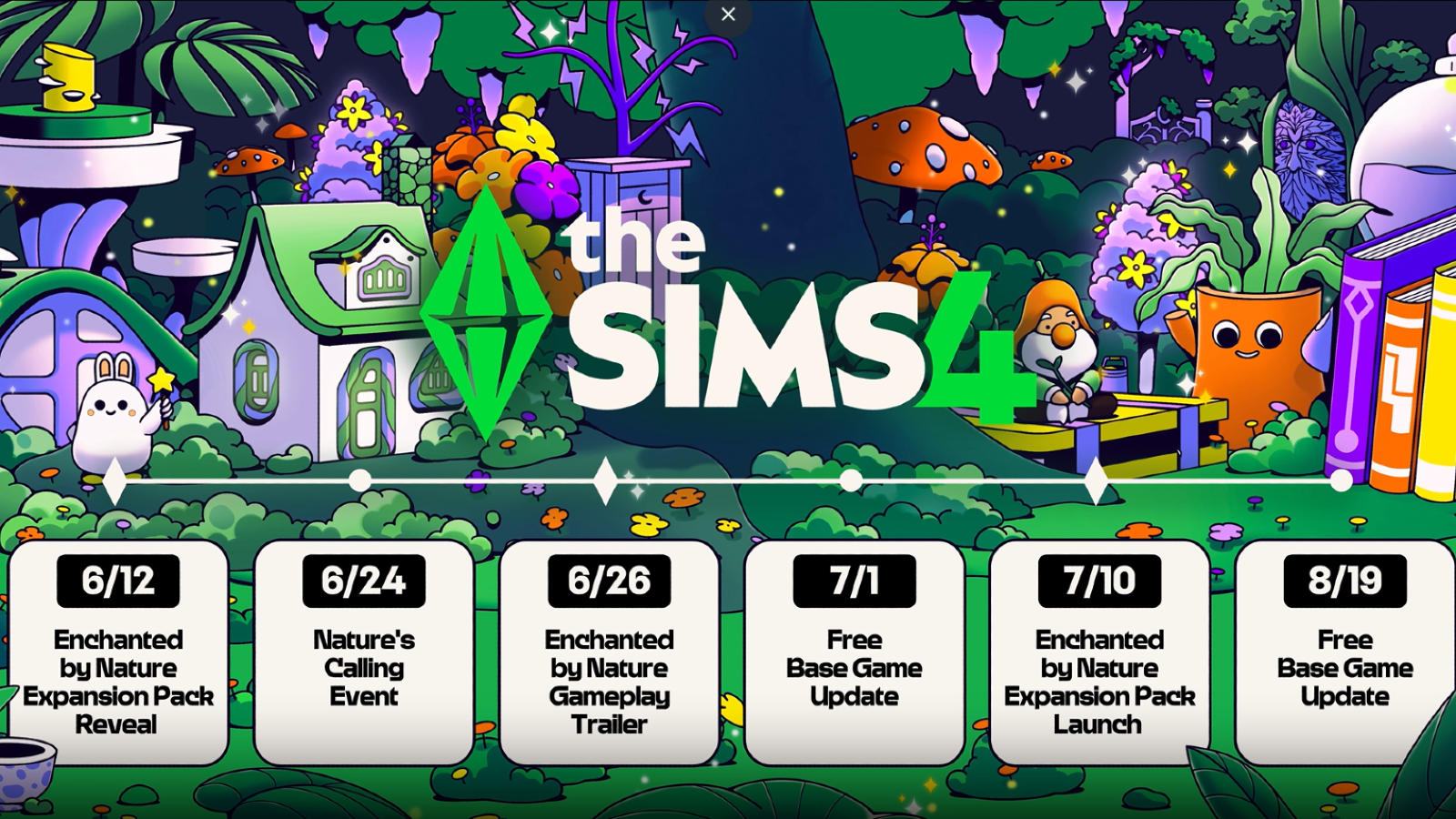 Watch for the twinkles in the forest on June 12 for the reveal of the Enchanted by Nature Expansion Pack. Get a more in-depth look at this whimsical world with a new gameplay trailer on June 26, and embrace the call of the natural world with the pack releasing on July 10.