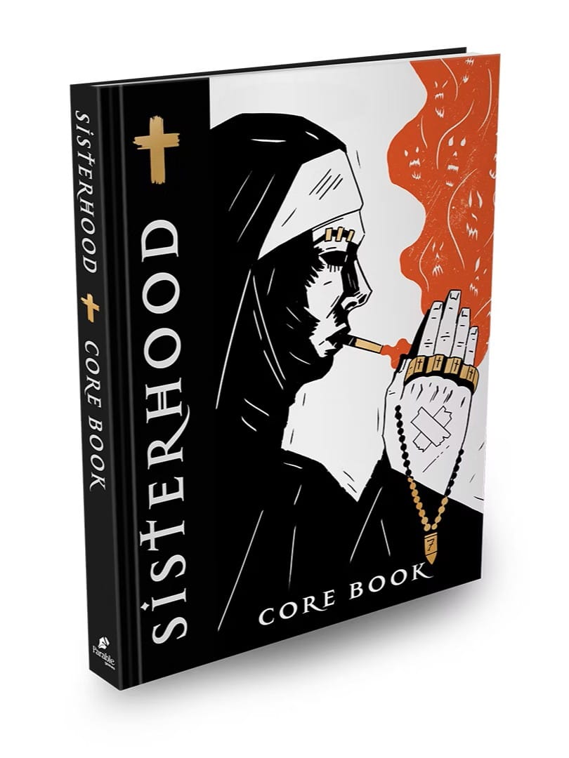 Parable Games is excited to bring Sisterhood to Backerkit as part of the Pocketopia festival, launching March 13th 2025. This Nuns with Guns RPG sees each player taking control of a hard-boiled nun as they battle the Apocalypse. But not just any nun. Gun toting, cigarette smoking, demon punching nuns.