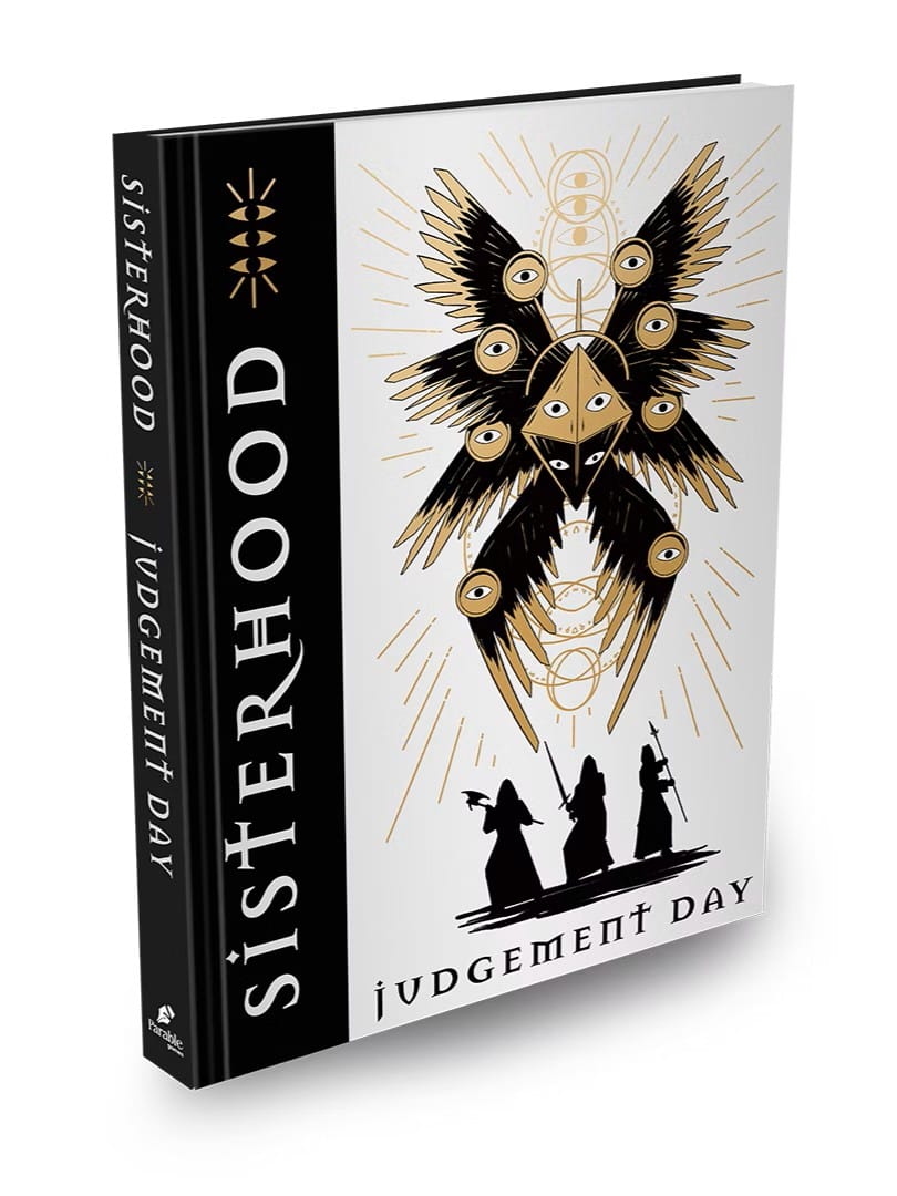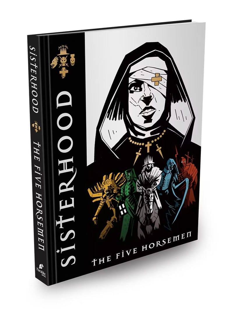 Sisterhood launches with three books, a core rulebook, and two story modules “The Five Horsemen” which sees the sisters tackling a mysterious fifth member in the apocalypse seeking horsemen as they try to end the world, and “Judgement Day” which pits our Sisters against…Angels?