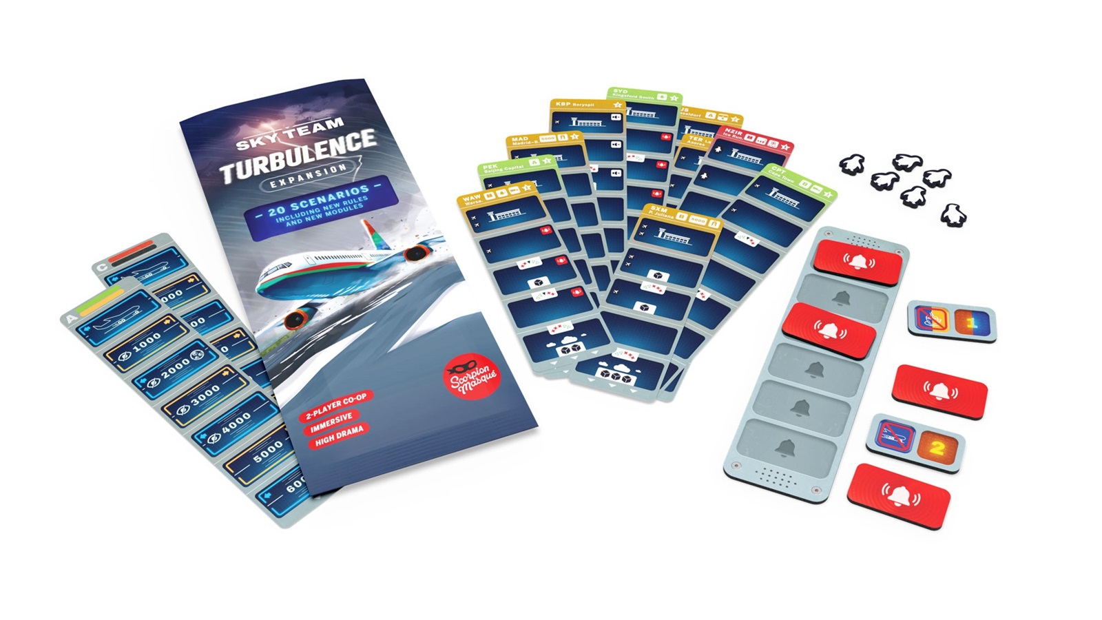 Sky Team Turbulence is available in stores at the price of $12.99 USD. The Sky Team base game is necessary to play with this expansion. Sky Team is the first Scorpion Masqué game for 2 players. A game of Sky Team lasts 20 minutes but offers undeniably deep and immersive gameplay.