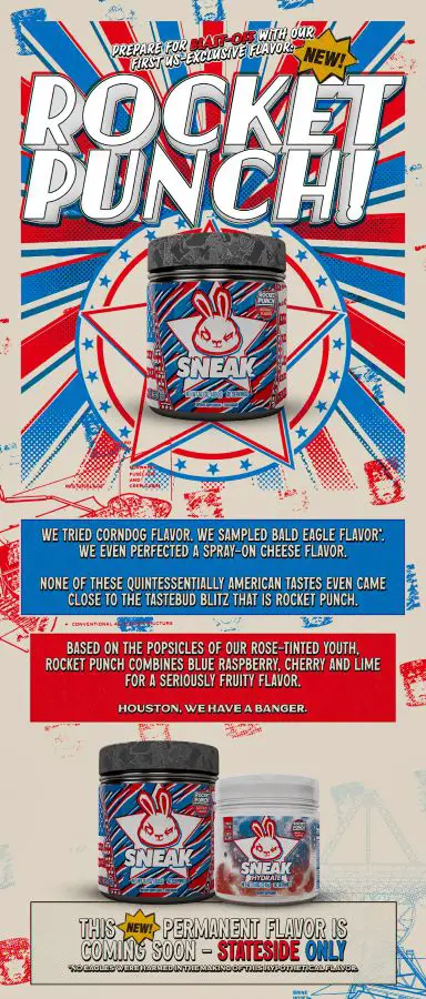 Sneak Energy is crossing the pond with ‘ROCKET PUNCH’. Launching as a US-exclusive flavor, ROCKET PUNCH blends blue raspberry, cherry, and lime to replicate the red, white, and blue ice cream popsicles we grew up on. The tubs will be available as 400g or part of their hydrate product line. No release date was given but stay tuned to Gaming Trend for updates on when you can pick up your tub of Sneak Energy ROCKET PUNCH!