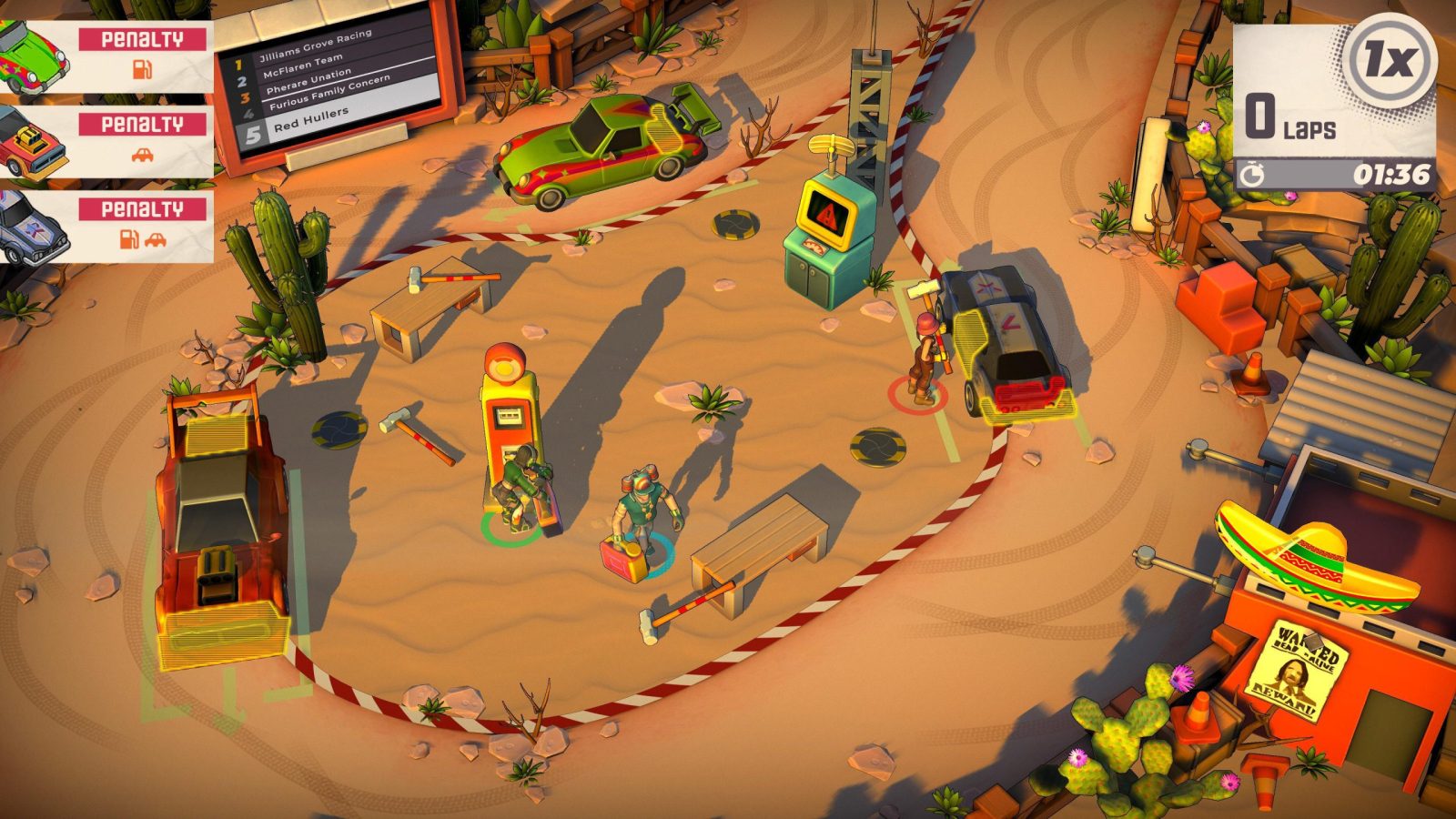Speeding straight into the action on race day, mechanics will need to handle a range of tasks, including tire changes, refuelling, and taking a hammer to damaged surfaces. With over 40 different ways to fix cars, many of which involve multi-step processes, only the most well-oiled crews will have what it takes to reach the checkered flag. This is no leisurely Sunday drive, as they contend with dynamic environments too. Moving floors, sudden weather changes, and locking gates all grease the wheels of complexity to even the most simple seeming pit stop. There’s no way to know what repairs each car needs until they enter the pit box, so even an organised pit crew can be thrown into chaos, and split-second decision-making could be the difference between victory or defeat.