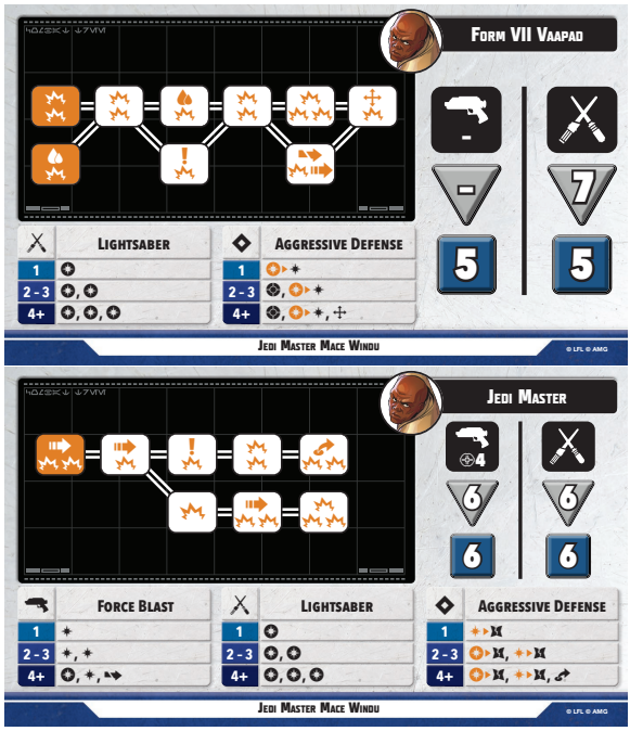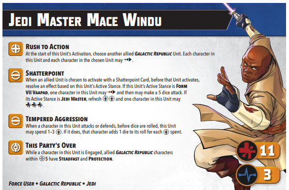 One of the more desperately-needed updates was for Mace Windu. He may have held the rank of Master and served on the counsel, but he only had 6 SP, which really restricted who he could bring along. With a bump up to 7 SP, it gives him a lot more options now. His “Shatterpoint” ability no longer requires Mace to be chosen and now it can be applied to an allied character. “Tempered Aggression” allows Mace to add dice instead of just rerolling, which statistically works out better for him, especially with those tanky Primary units.