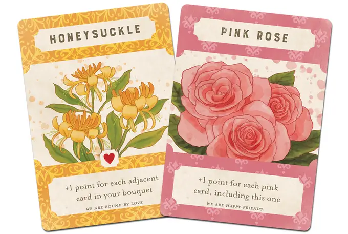 Famous authors such as William Shakespeare, Jane Austen, Charlotte Bronte, and Emily Bronte all utilized the meaning of flowers in their writings, and now you can experience the language of flowers in this newest wallet game from Wingspan designer Elizabeth Hargrave, artist Beth Sobel, and Button Shy Games
