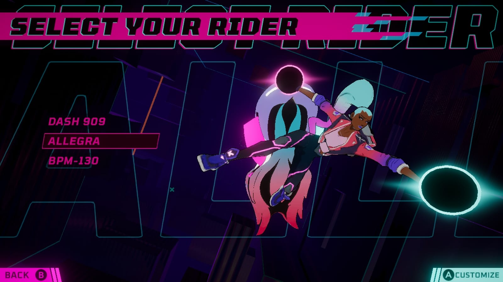 Customization Options: Players can ride the rails in style with three different avatars, plus various outfits and accessories to personalize their Synth Rider.