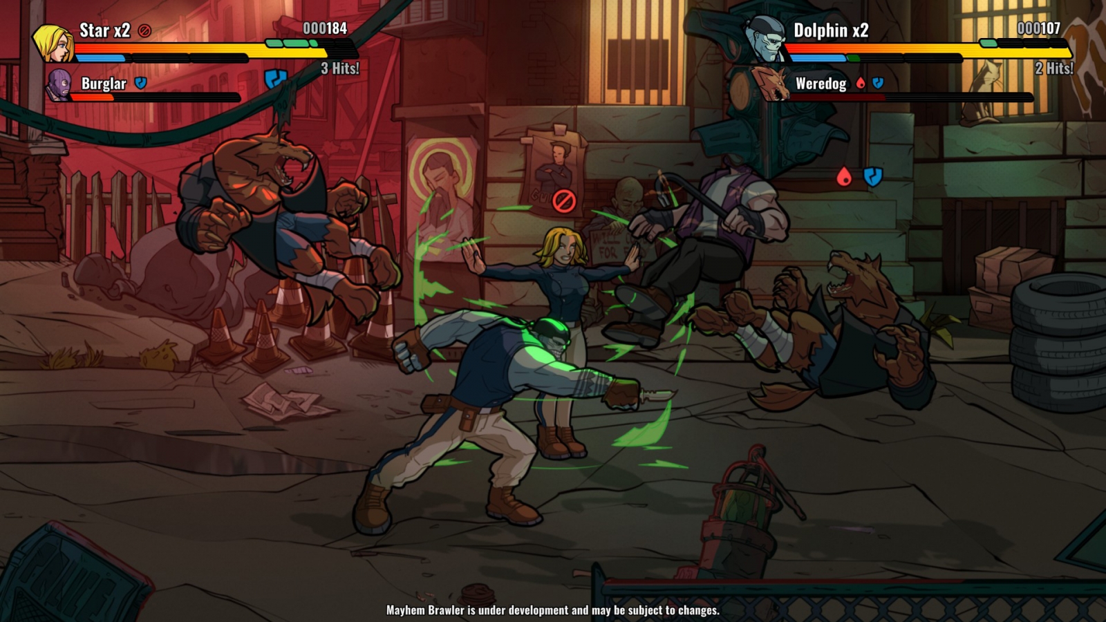 Comic book inspired hand-drawn backgrounds and frame-by-frame animations coupled with a kick-ass soundtrack will deliver a jolt of adrenaline to your controller. With the choices you make, you will shape the flow of the story and finally reach one of the three different endings in Mayhem Brawler universe, where each corner has a story to tell.