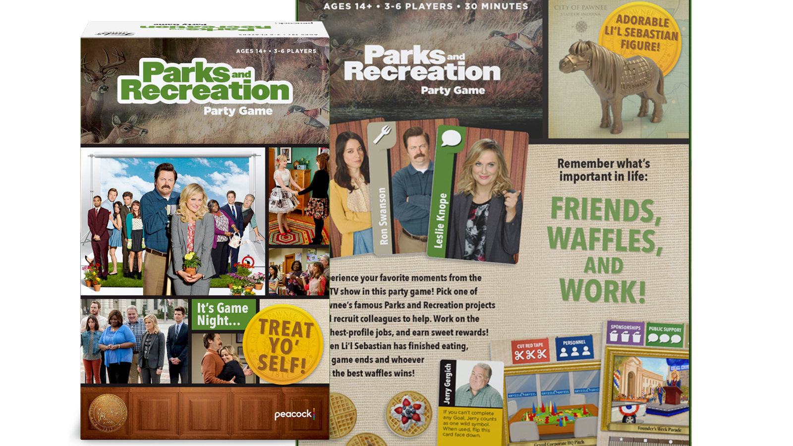 Remember what’s important in life: Friends, Waffles, and Work! Relive your favorite moments from the hit TV show in this party game! Pick one of Pawnee’s famous Parks and Recreation projects, make deals, and recruit help. You’ll need to work with your colleagues, but if you can take more credit, you’ll earn sweeter rewards. When Li’l Sebastian is done eating, the game ends and whoever has the best waffles wins!