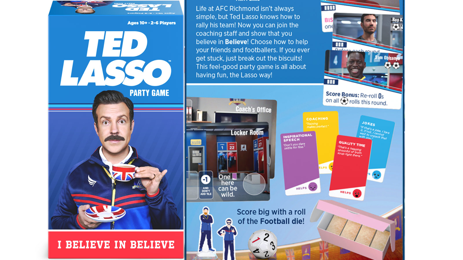 Life at AFC Richmond isn’t always simple, but Ted Lasso knows how to rally his team! Now you can join the coaching staff and show that you believe in Believe! Choose how to help your friends and footballers. If you ever get stuck, just break out the biscuits! This feel-good party game is all about having fun, the Lasso way!