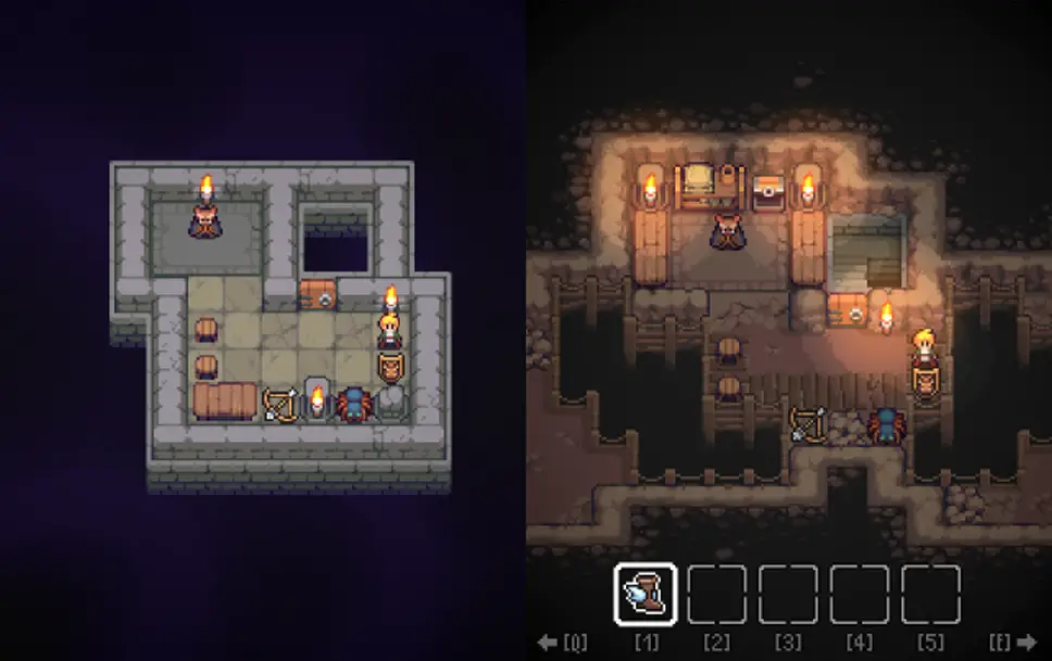 Dungeon and Puzzles is a 2D spatial logic and ability switch puzzle game. The adventurer’s ability depends on what equipment he currently uses. You have to think through every step. After clearing the level, you can try other routes of strategy to optimize your solution.