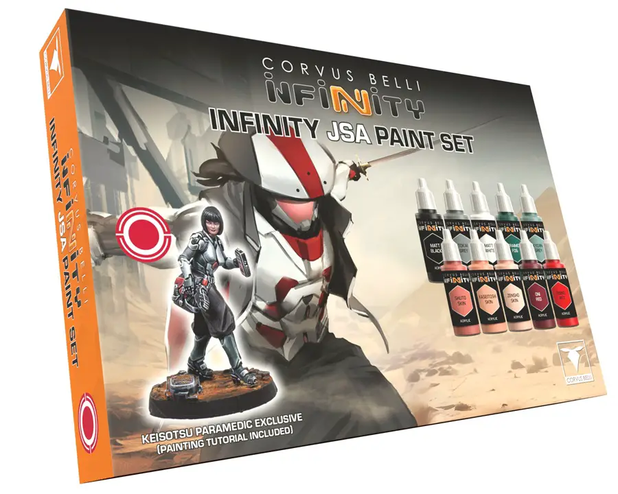 Corvus Belli proudly announces a strategic partnership with The Army Painter, the paint brand’s innovation, quality, and community appeal led to their decision to make them the official paints, tools, and accessories for their popular miniature wargame, Infinity. This collaboration, which seeks to strengthen the presence of both companies within the tabletop community, kicks off this March with two themed paint sets — one for the JSA and one for PanOceania. They’ll arrive both on The Army Painter shop and Corvus Belli Online Store at a price of €45.