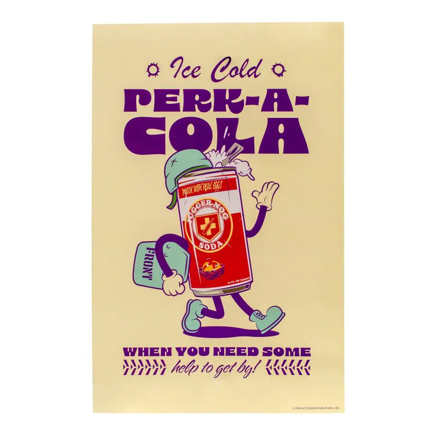 - A glossy 11″ x 17″ poster of the iconic Jugger-Nog Perk-a-Cola, perfect for decorating gaming spaces.