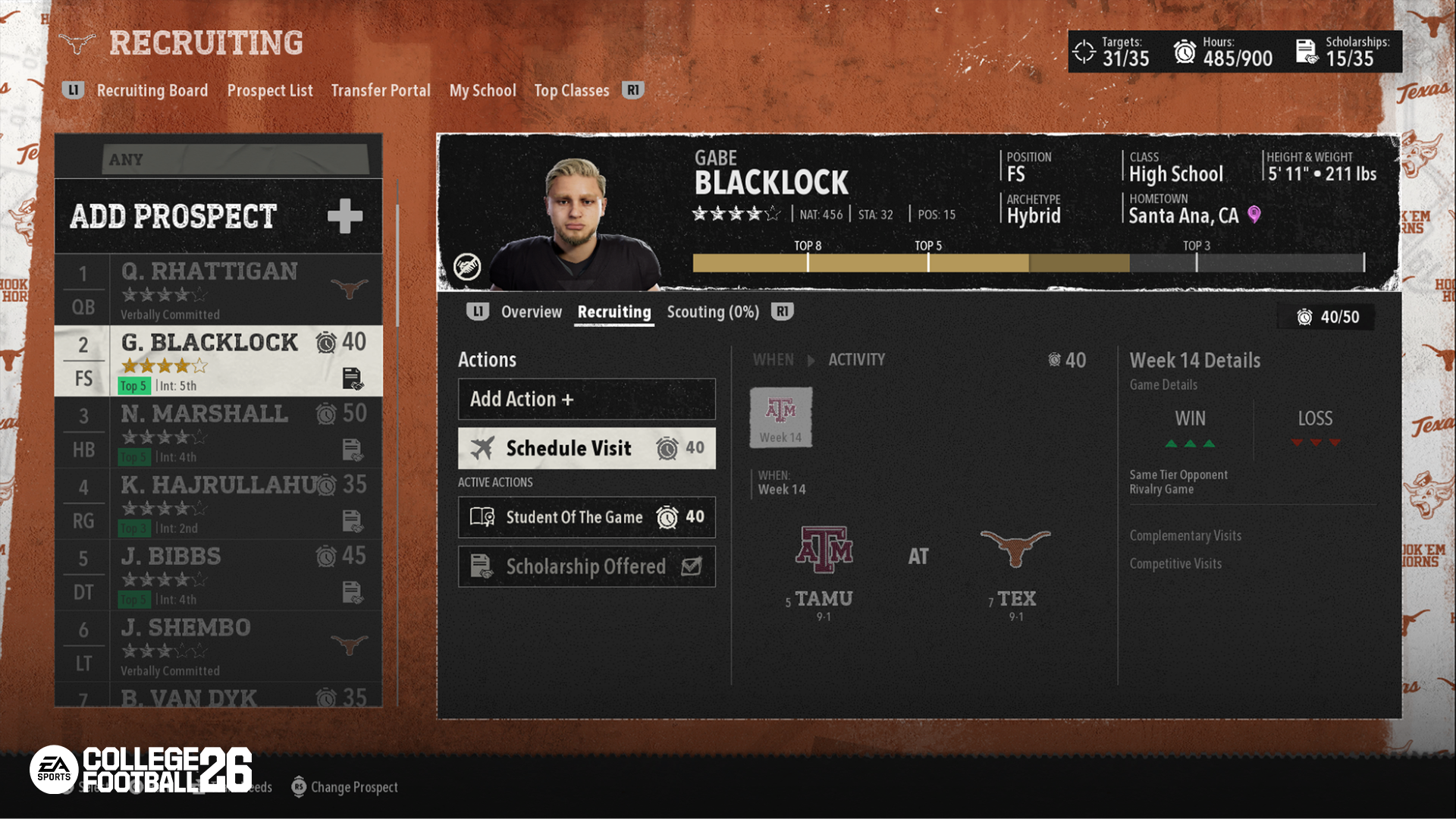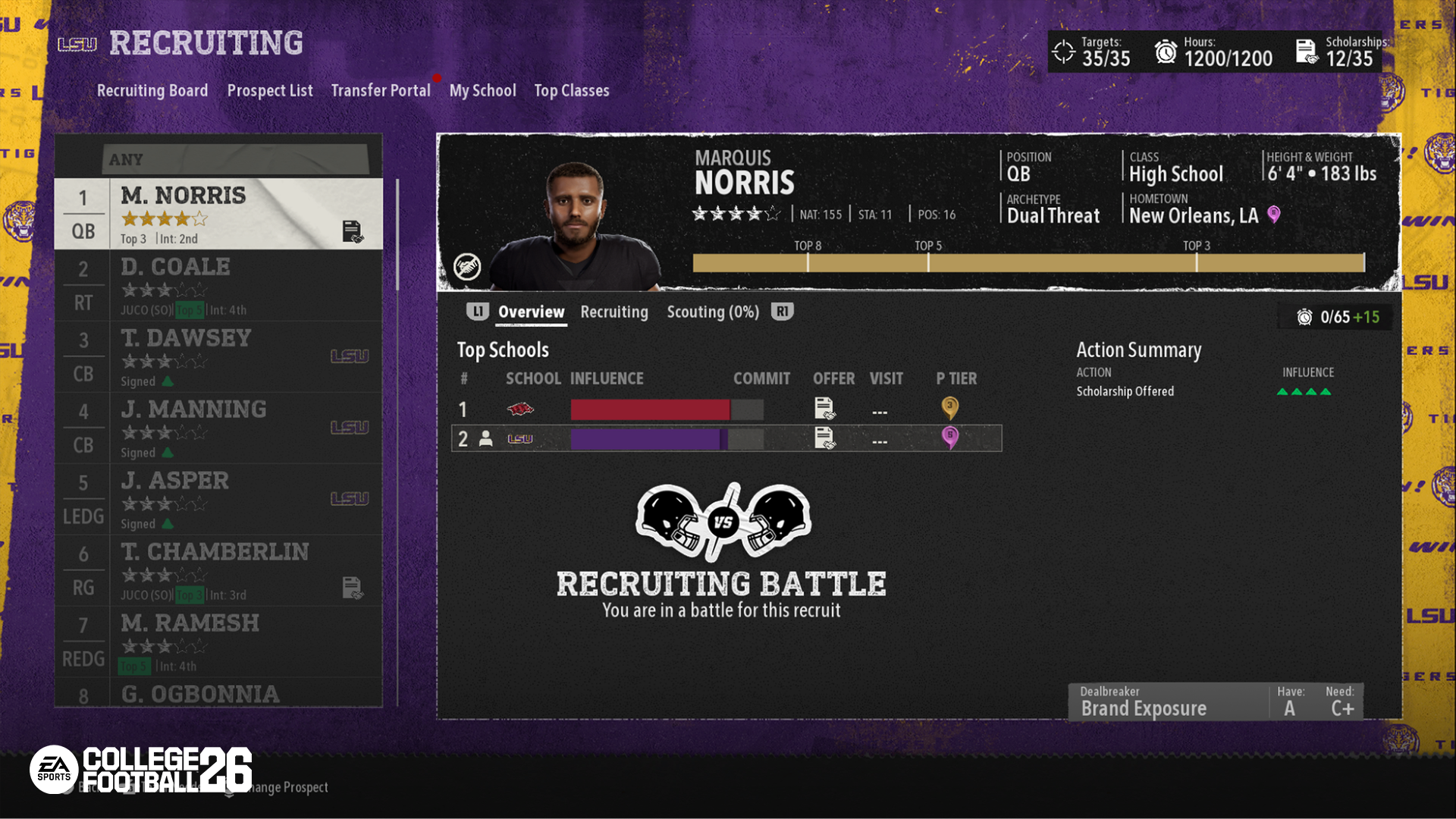 There is so much here I can't talk about it all, but these changes will make the recruiting, transfer portal, and everything team-building feel more alive than ever before. One small detail I want to point out is the bar at the top of the screen in some areas that will say team needs. This, again, stops me from having to get out pen and paper in order to write down every position I need to upgrade.
