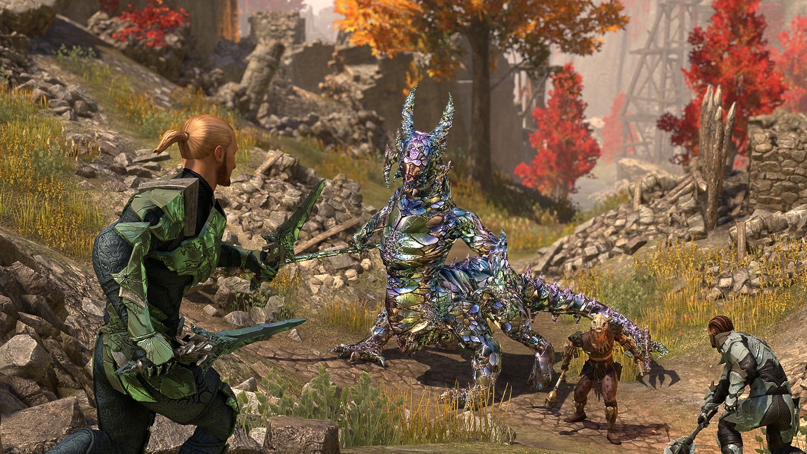 As with previous ESO Chapters, we will get an all new zone to quest in, along with a story that will span the course of the year. If you’ve played The Elder Scrolls IV: Oblivion, then you’ll be familiar with the West Weald zone, which is situated between Cyrodiil, Gold Coast, Reapers March, and Craglorn. The West Weald will be split up into three biomes: The Gold Road which features a forest that is windswept and loaded with fall colors. Valenwood Annexation which will be a jungle rainforest, and the Colovian Highlands with rocky hills and fall colors. Our main hub city for the new Chapter will be Skingrad within the West Weald.