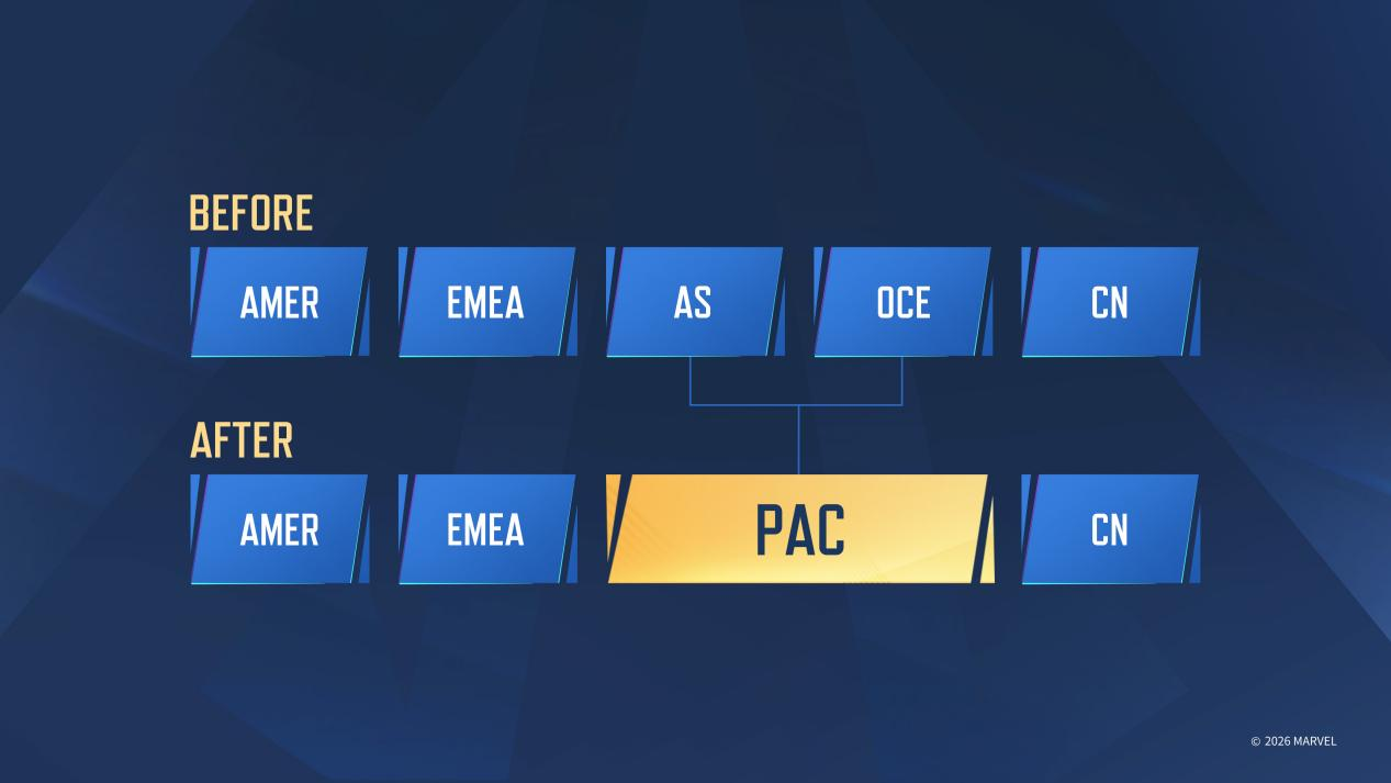 The 2026 Marvel Rivals Esports season will be built around three core competitive stages and feature two international LAN events. A significant new addition is the preseason, which will take place in April. The season will then unfold with Stage 1 running from May to June, followed by the Mid-Season Finals in August. Stage 2 will take place from September to October, culminating in the Grand Finals in late November. The 2026 Marvel Rivals Esports Pro League will feature four premier regions: AMERICAS, Europe, the Middle East, and Africa (EMEA), PACIFIC and CHINA.