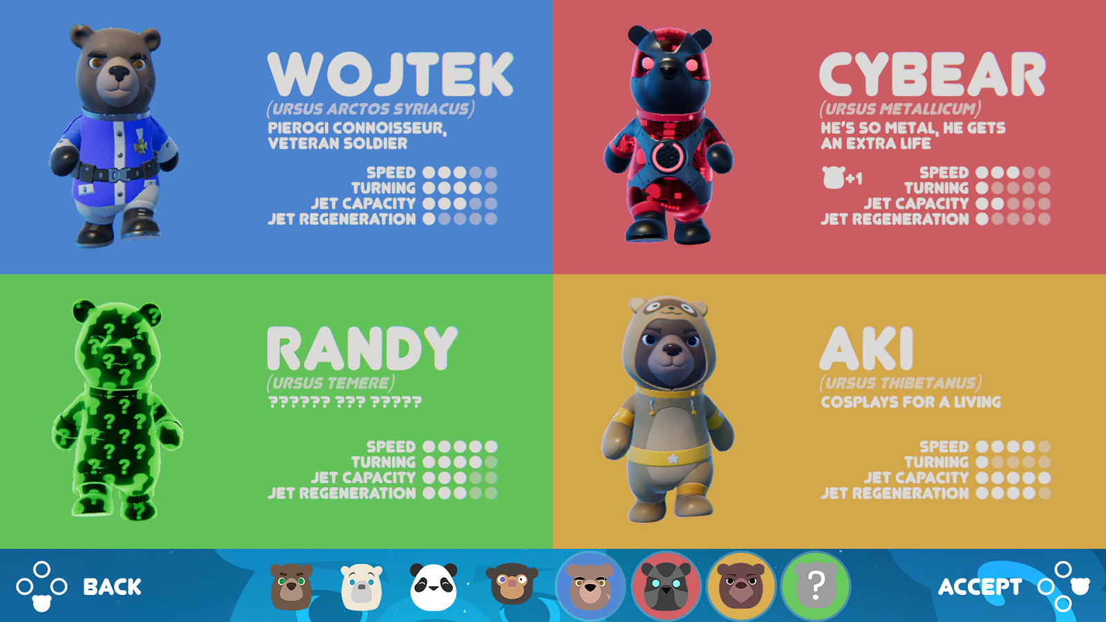 Competitive Mode is a new 1v1 tournament play option to support the growing Astro Bears esports community. In this Best of 5 competition, players select 3 different Astro Bears and selects one that best fits the randomized environment. Play continues in rounds to 10 points, at which point the next random environment appears. The winner is the player who wins with all three Astro Bears.