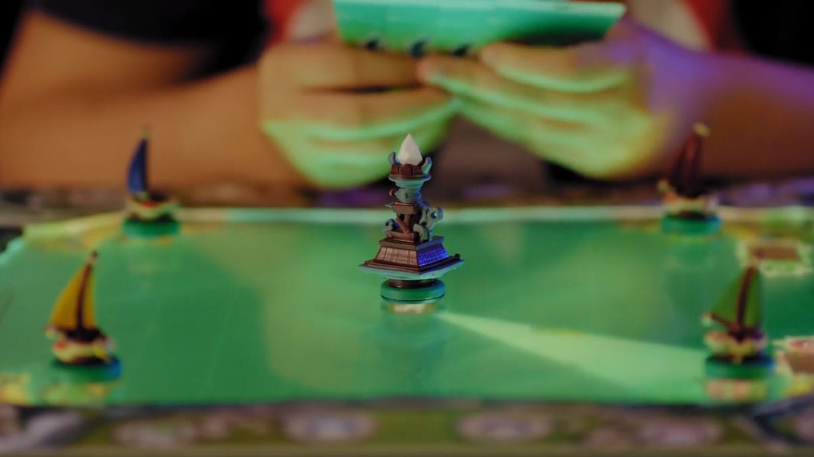 The board’s surface is a large touchable screen with movable borders that increases the playing area depending on the game. The game board sits vertically, which allows for players to experience virtual gameplay while also enforcing the human connection of traditional board games. Watch each board game come alive with the built-in touch screen, and its connected objects including cards, dice, figurines and the world’s first connected dice track that enable players to both physically and digitally interact.