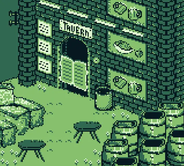 Animated pixel-art graphics.