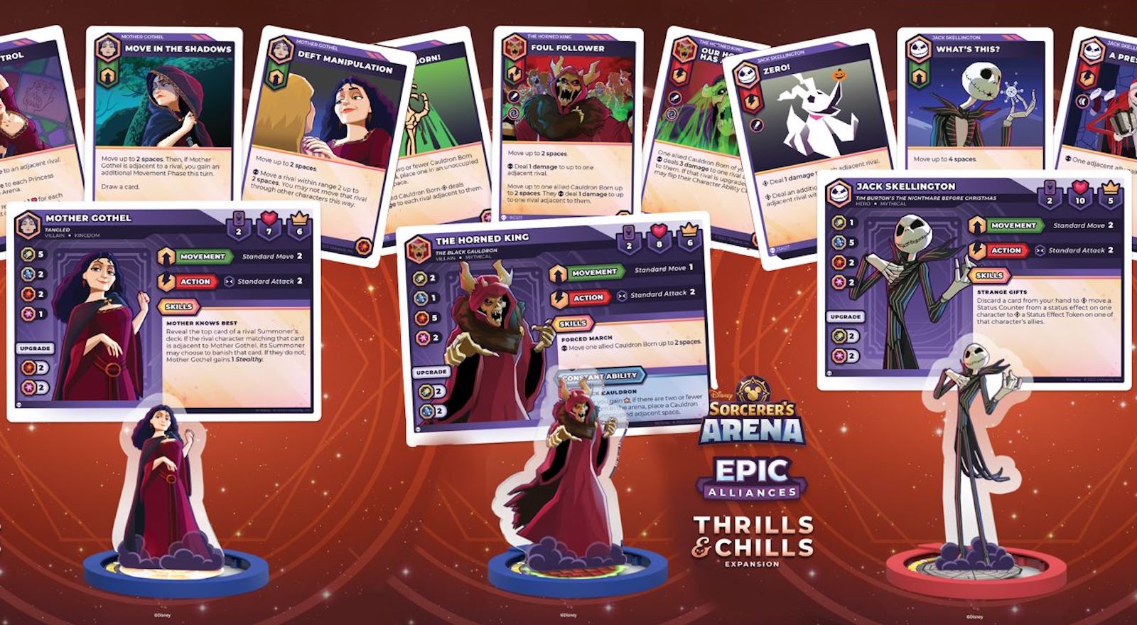 “Get ready to create a scare in the Arena as three new Disney characters – Jack Skellington, The Horned King, and Mother Gothel – arrive in the second expansion for Disney Sorcerer’s Arena: Epic Alliances Thrills and Chills”