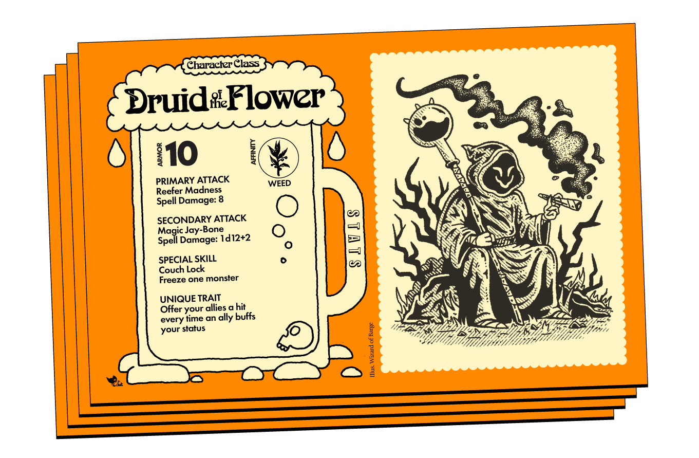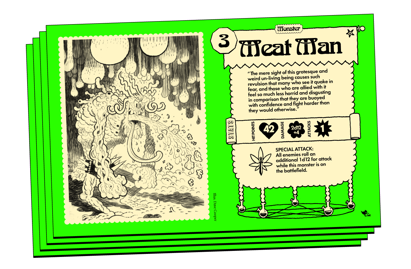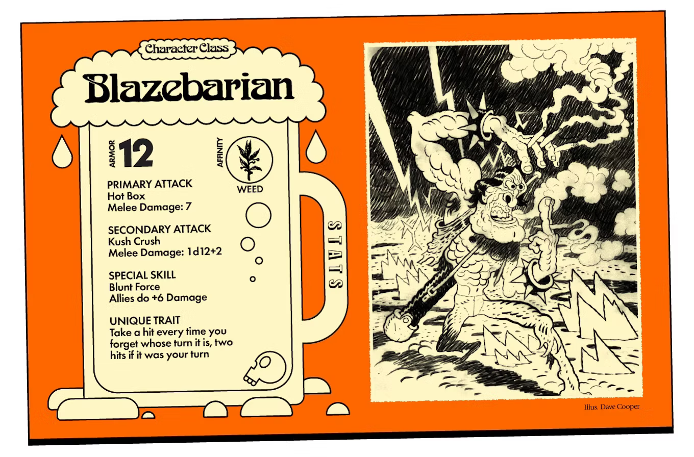 Choose from 12 absurd Classes like the Beerbarian, Weed Wraith, Whiskey Wizard, or Druid of the Flower—each with a base stat profile, two attacks, a Special Skill, and a Unique Trait. Customize your delinquent with Equipment (permanent buffs or debuffs) and Items (one-time-use chaos), then dive into combat by rolling the signature d12 to summon monsters like Meat Man, The Cough Fiend, or the surprisingly chill Friendly Ooze. The longer you survive, the more chaotic—and ridiculous—the monster pile becomes.
