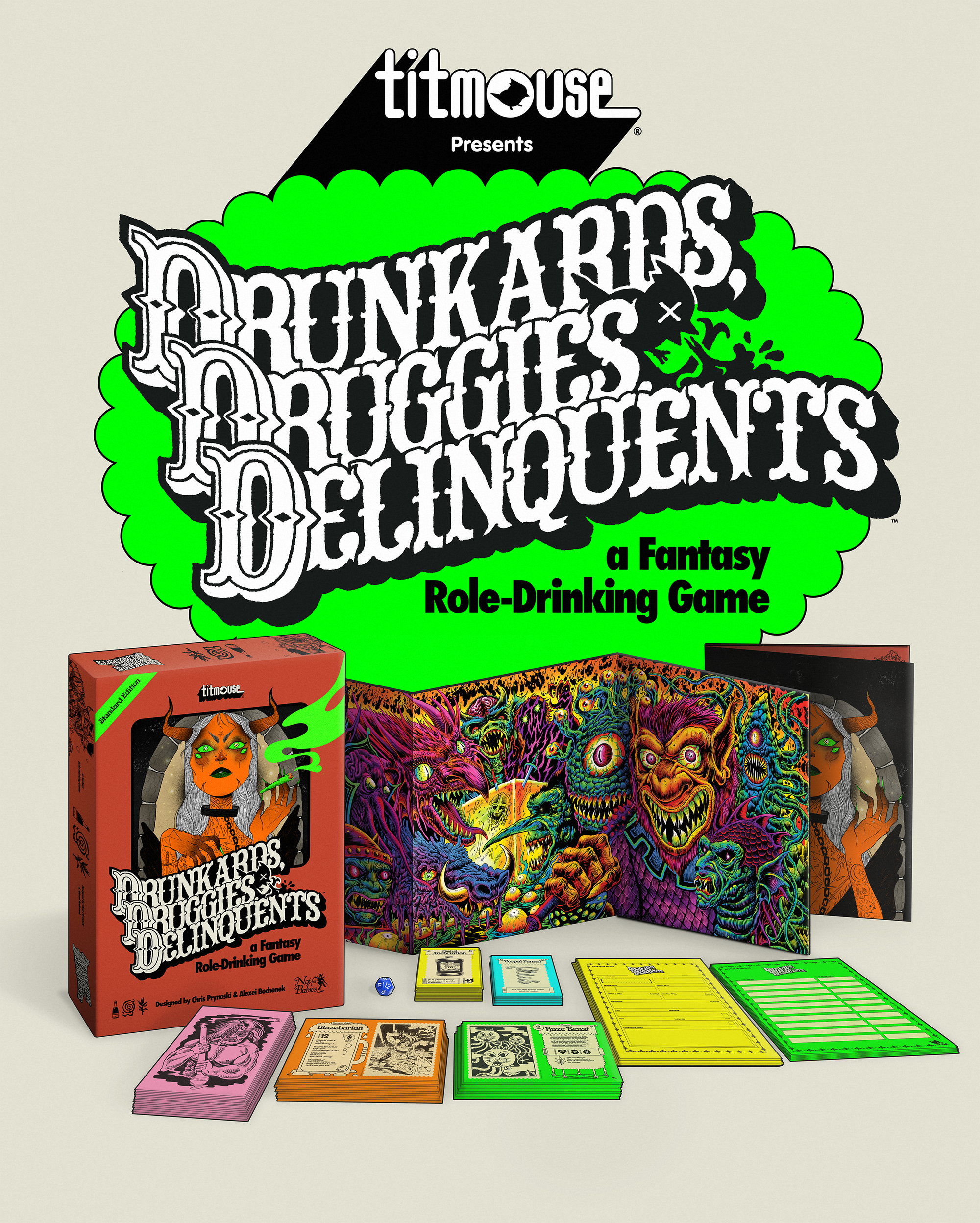 As part of their 25th anniversary celebrations, Titmouse, the award-winning animation studio behind Big Mouth, The Legend of Vox Machina, Metalocalypse, Star Trek: Lower Decks and more, has officially opened pre-orders for its first-ever tabletop RPG Drunkards, Druggies & Delinquents. Copies will begin shipping in late August ahead of the Fall 2025 release.