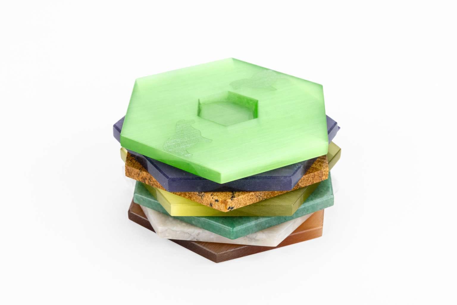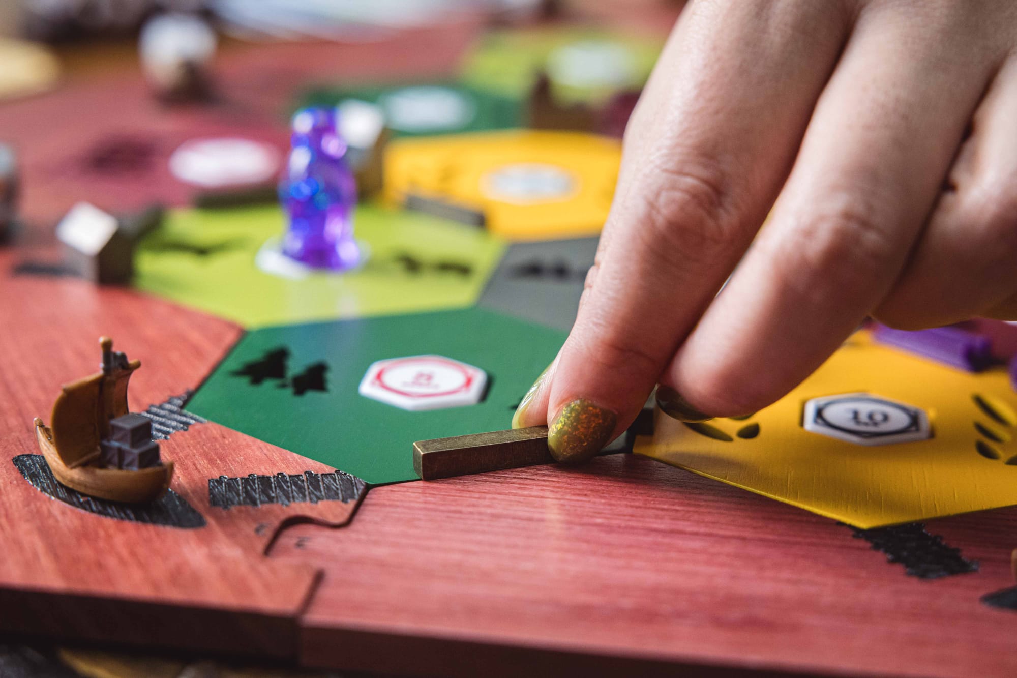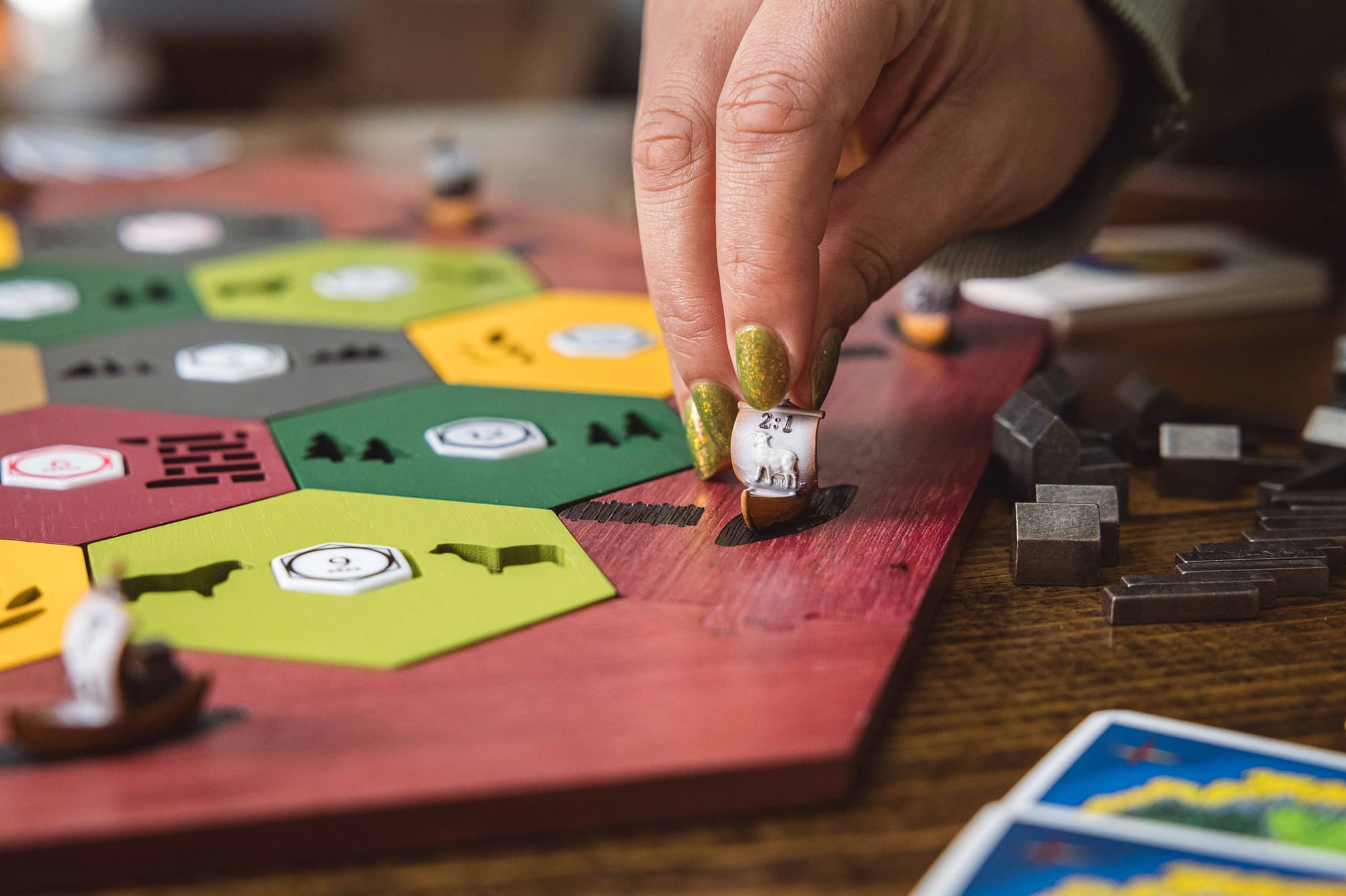 These deluxe components offer backers over fifty different choices of player pieces, robbers, hexes, dice and more, featuring materials like wood, resin, and even gemstone: